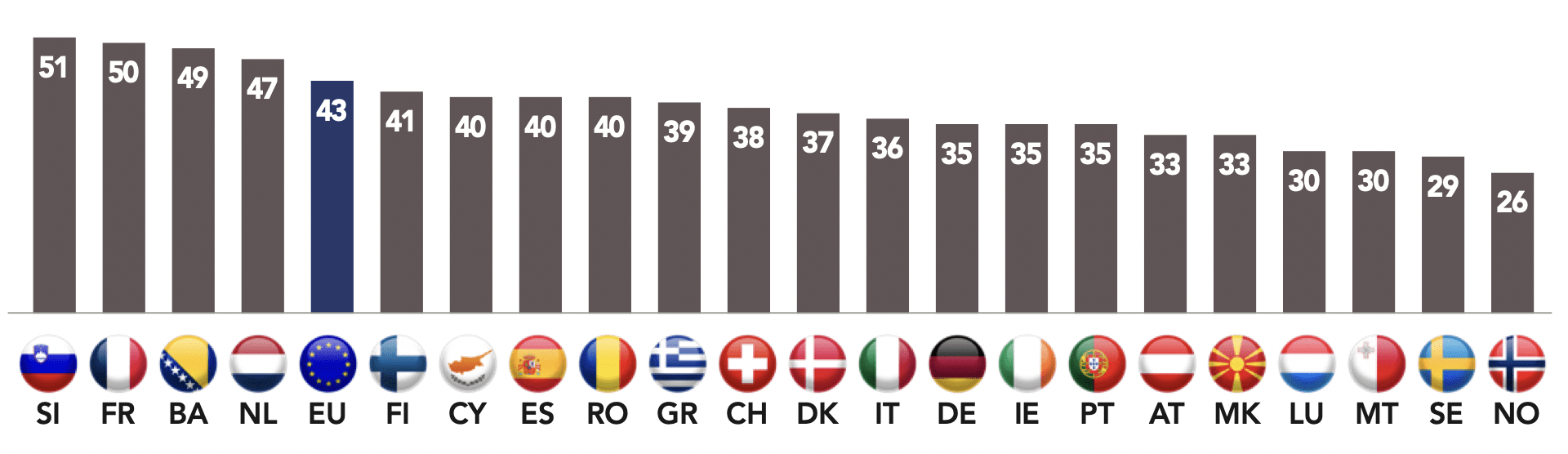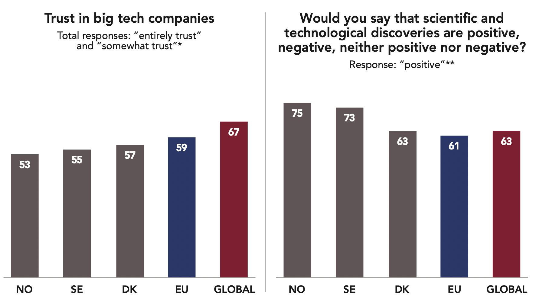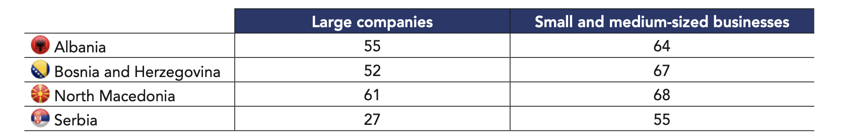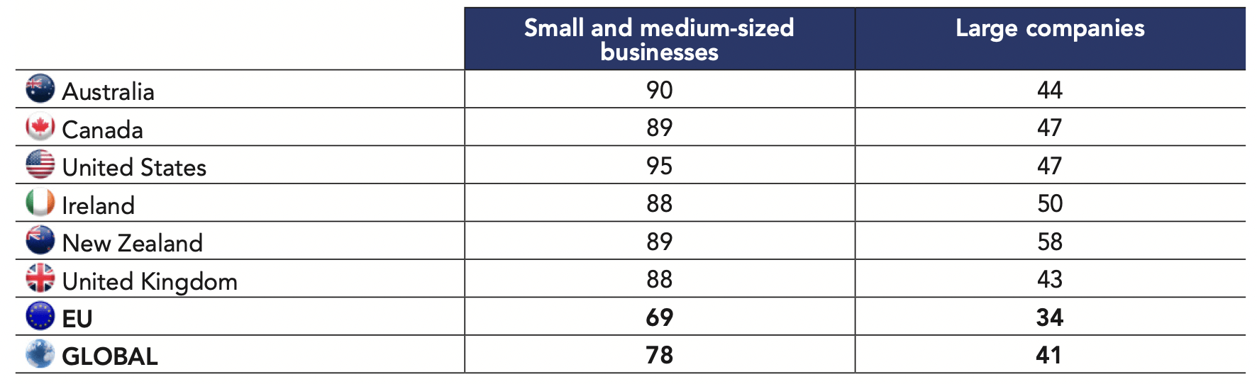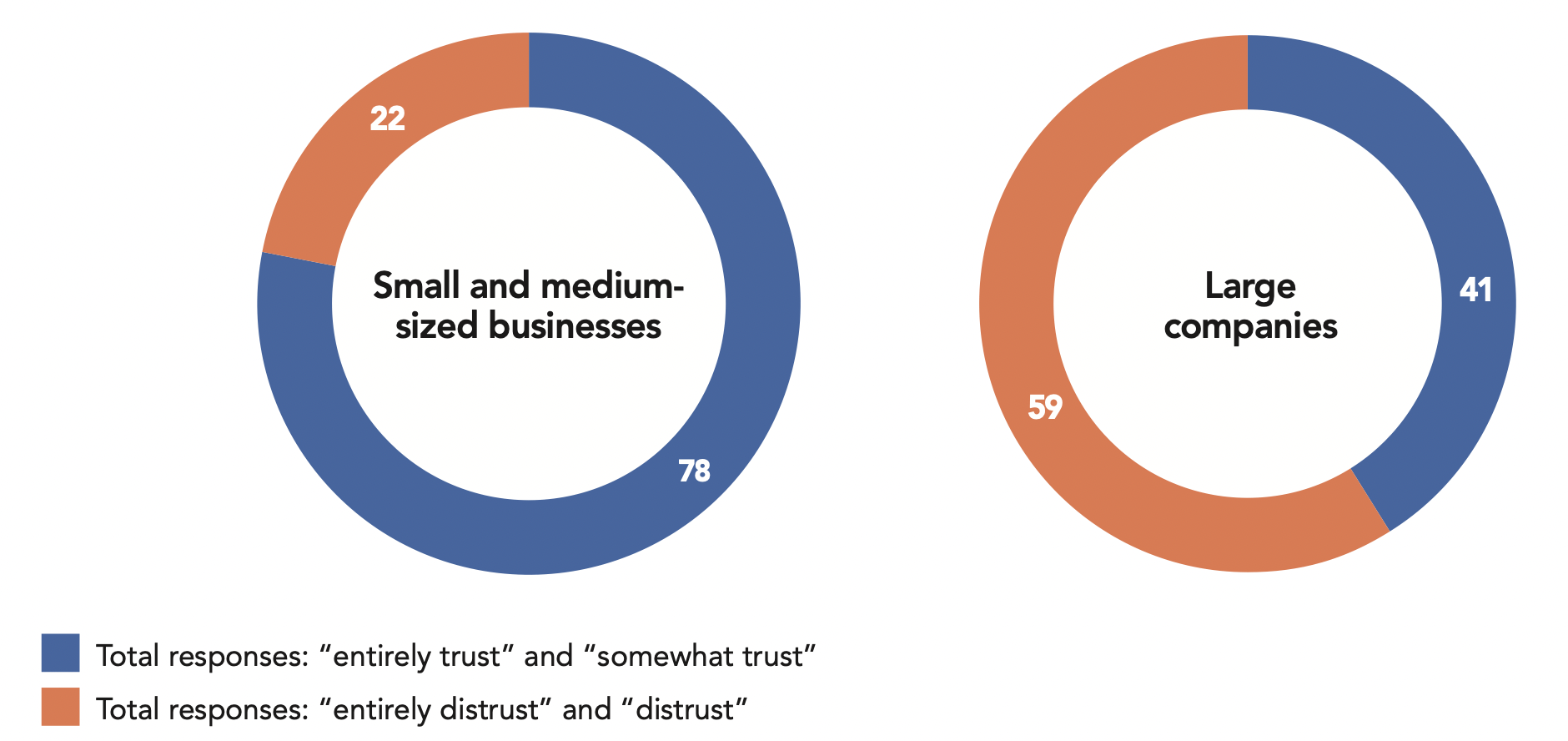 This relationship associating trust and proximity, provided services and political neutrality is shown in regard to citizens’ level of trust in companies. In most countries, they widely distrust large companies (59%) yet tend to trust small and medium-sized businesses (78%).