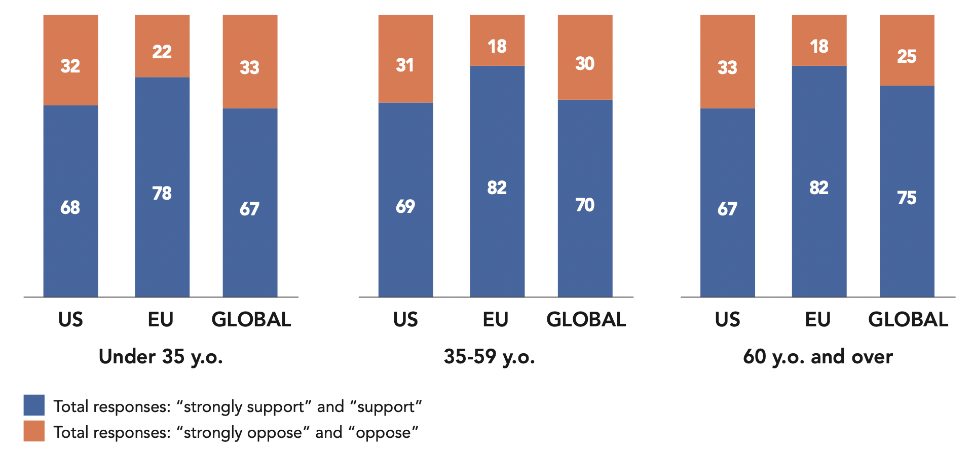 Member countries of the European Union are slightly more opposed to interventions (55%) than the overall sample (53%). The fact remains that 45% of Europeans are favorable to this type of intervention.