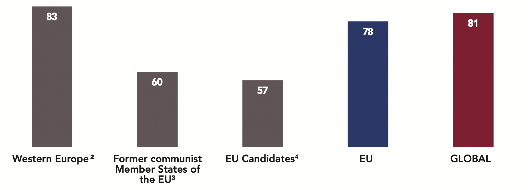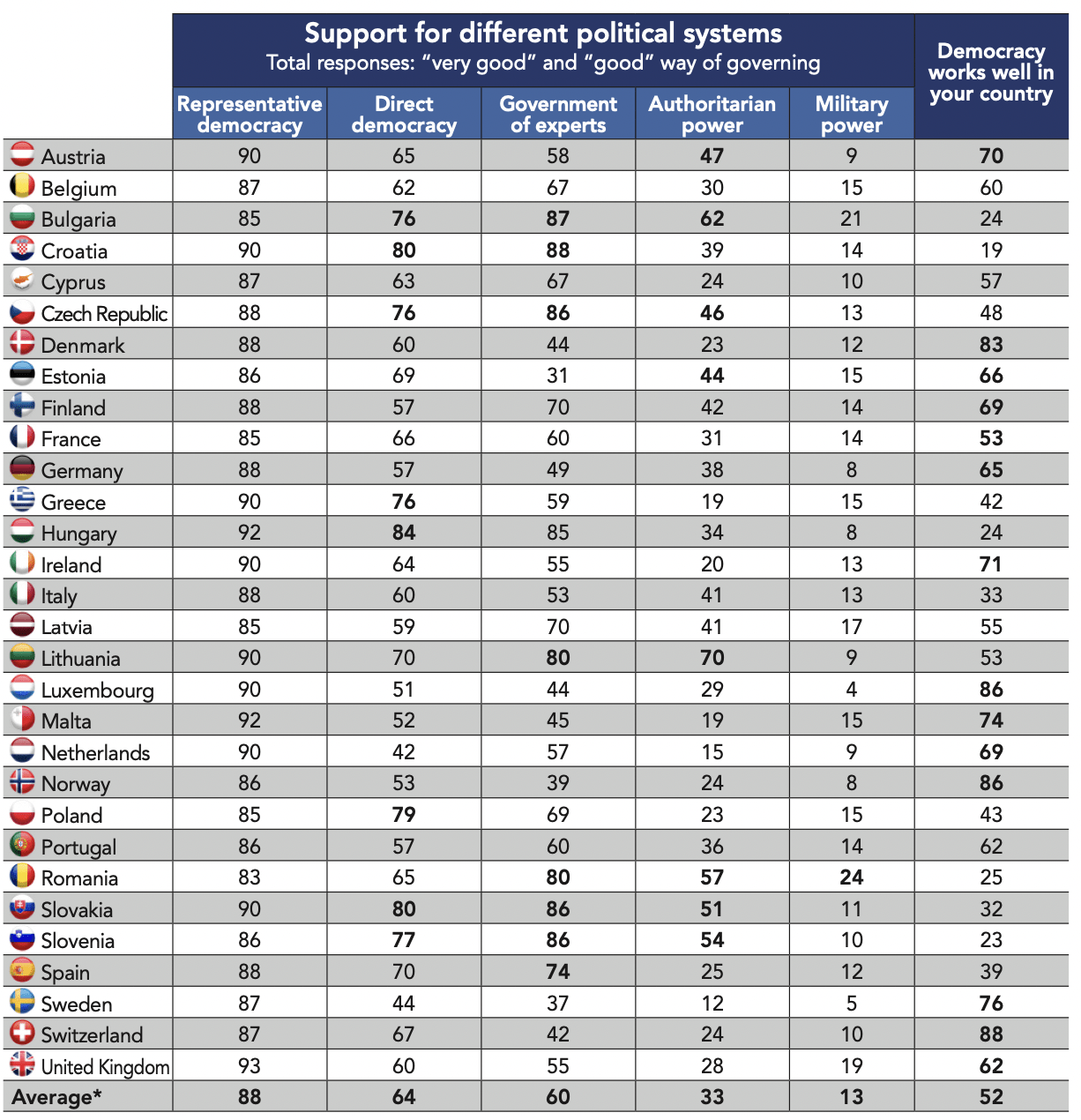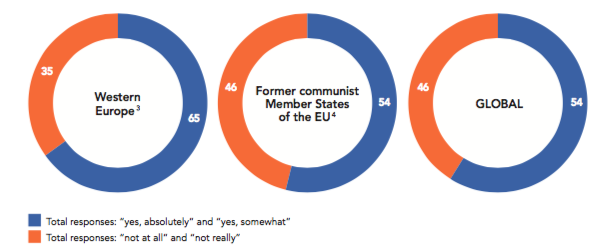 The worrying influence of these undemocratic powers may be one of the driving factors for the appeal to create a European army, representing majority support in Western Europe (58%) and an even higher percentage in former communist Member States (63%).