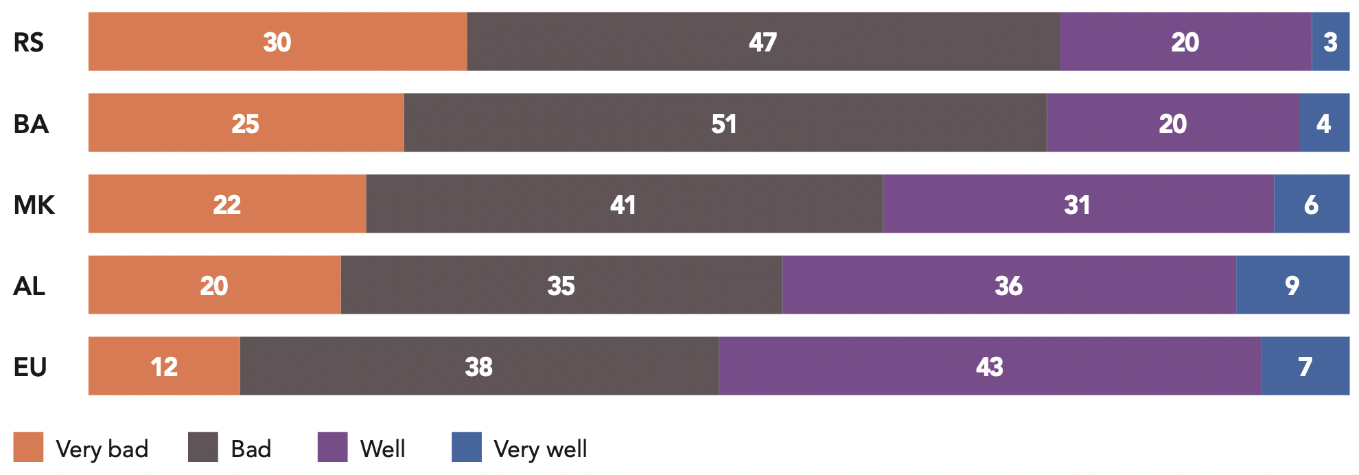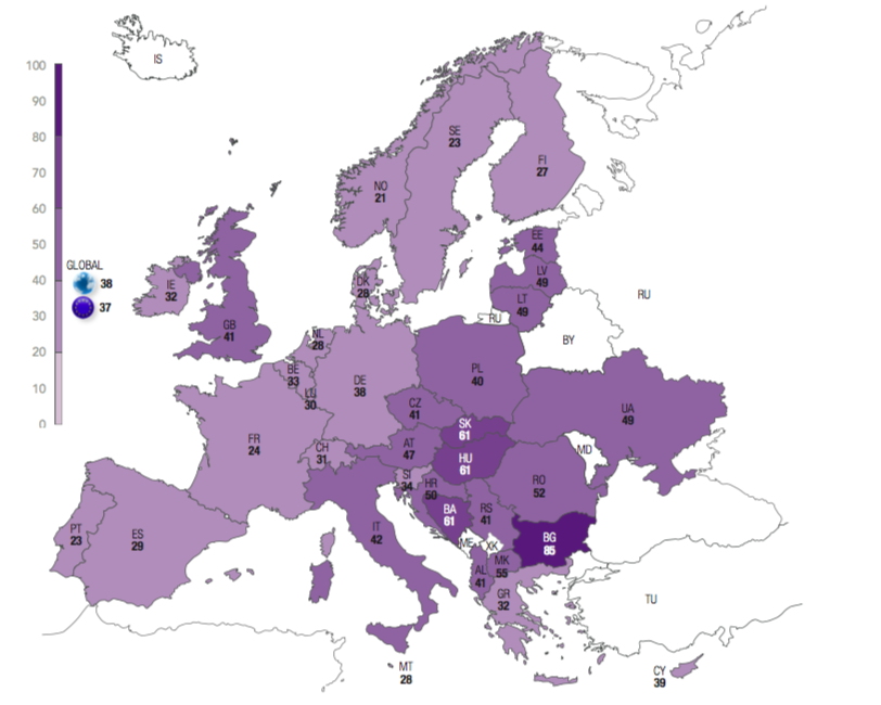 Among the former members of the Eastern bloc, not all share the same concern about Russian power. This stems from historical, religious (Orthodox Church), or economic proximity of certain countries to Russia. A majority of Serbs (56%) consider Russia reassuring. They are the only country where this is the case. The same sentiment is expressed at a relatively high rate among Bulgarians (45%) and, to a lesser extent, in Bosnia and Herzegovina (39%), because of the many Serbs living there.