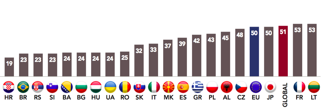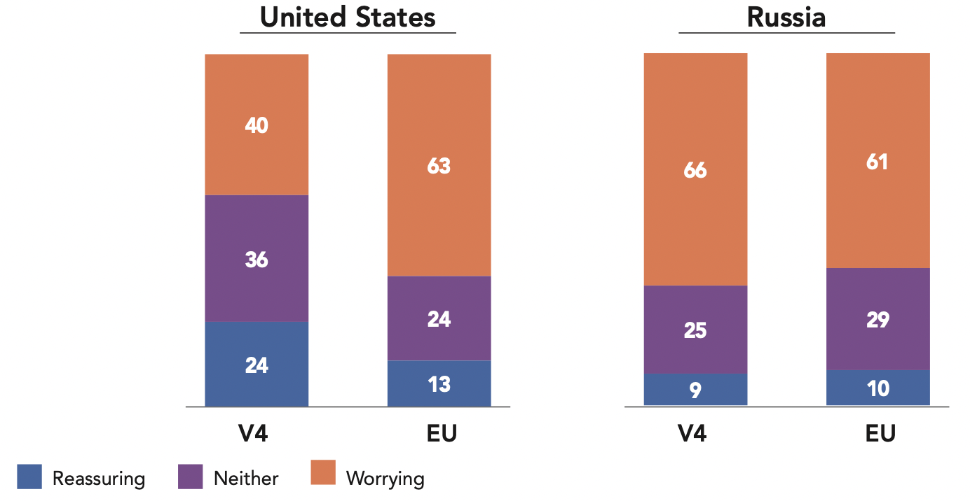Overall, these countries are less likely to see U.S. foreign policy as a concern (43%, compared to 56% for all countries), which is even more significant given that it is not known whether these concerns are partly a result of a fear of Trump’s U.S. turning its back on Europe. However, significant disparities likely exist between these countries. For example, Slovakia’s complex relations as part of the Austro-Hungarian Empire and its sensitivity to Pan-Slavism may explain a higher level of concern regarding the U.S. (70%). The idea of a sort of “third way” between the West and the East – shared by part of the population – has long encouraged Slovaks to seek a neutral position. However, the Slovak State’s commitment to the United States remains unmistakable. This was made clear by the government’s decision to buy fourteen new U.S. F-16 fighter planes.