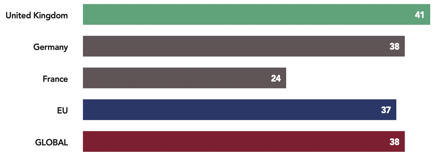 The unique relationship that Israel has had with the United States since the creation of the Jewish State in 1948 is reflected in the results: 59% of Israelis say they are reassured by the United States’ international posture. This closeness was strengthened by Donald Trump’s decision to move the U.S. Embassy in Israel to Jerusalem and withdraw from the Iranian nuclear agreement in May 2018. The willingness of the Europeans to maintain trade relations with Iran, Israel’s great adversary, despite the American withdrawal from the agreement may explain the fact that Israelis are, among the 42 democracies, those who most often say that they “worry” about the European Union’s posture on the international stage (41%, compared to 23% on average).