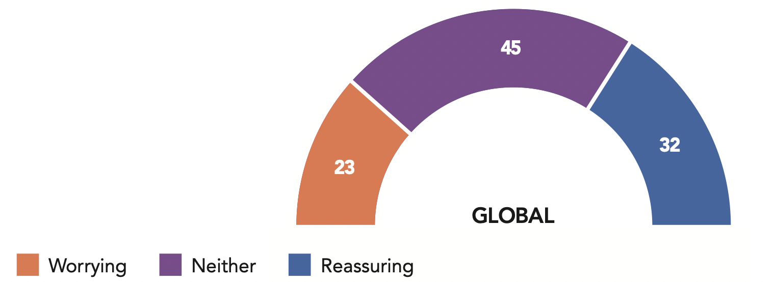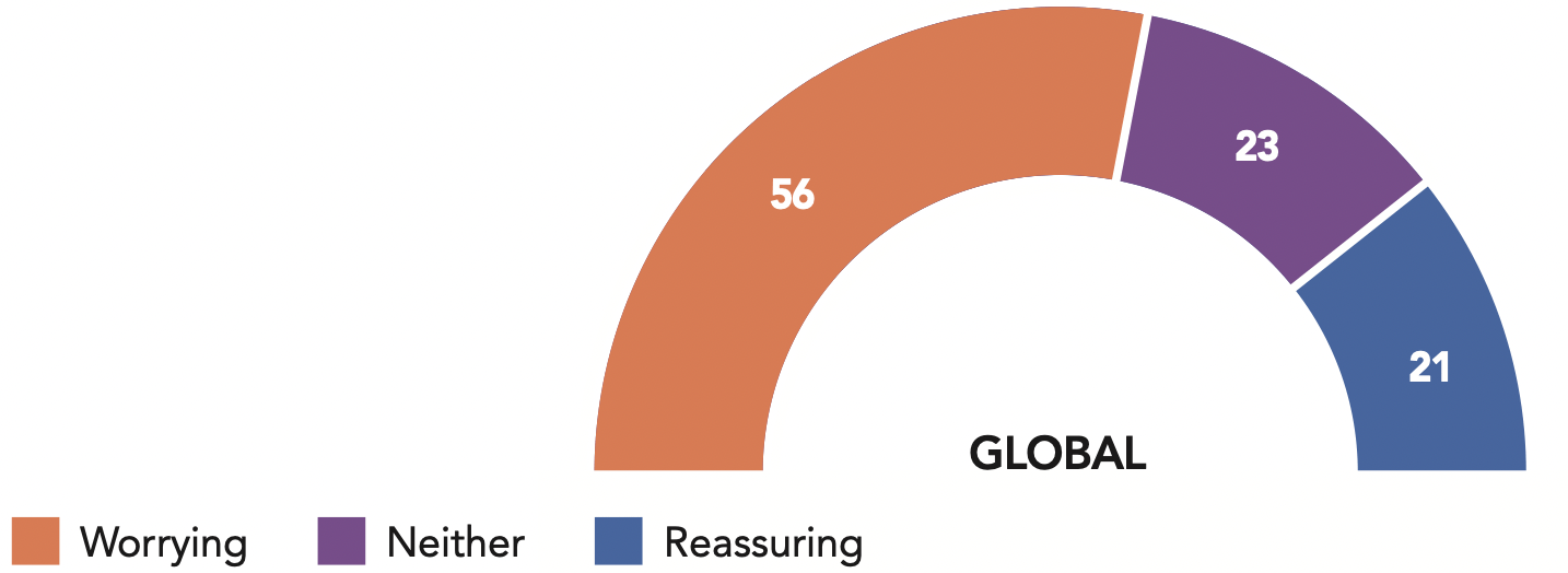 Indicate whether you think China’s posture on the international stage is worrying, reassuring or neither