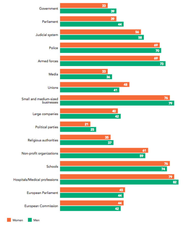 Trust in institutions (continued)