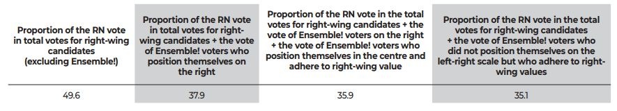 The Rassemblement national vote represents between a third and a half of the right-wing vote