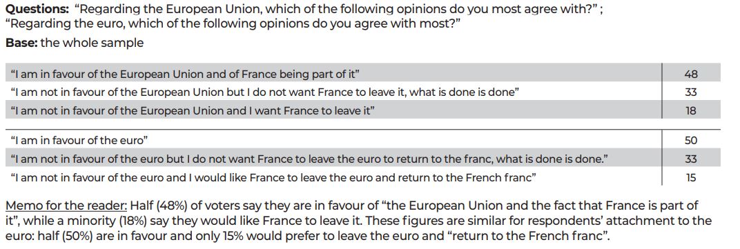 Nonetheless, public scepticism is also, and probably more so, related to the risks that the election of Marine Le Pen would pose to the euro. The broad and constant support of public opinion for the European Union, and even more so for the euro, limits the process of institutionalisation of the RN, which is a prerequisite for the further electoral progress of the party and for the fulfilment of Marine Le Pen’s presidency.