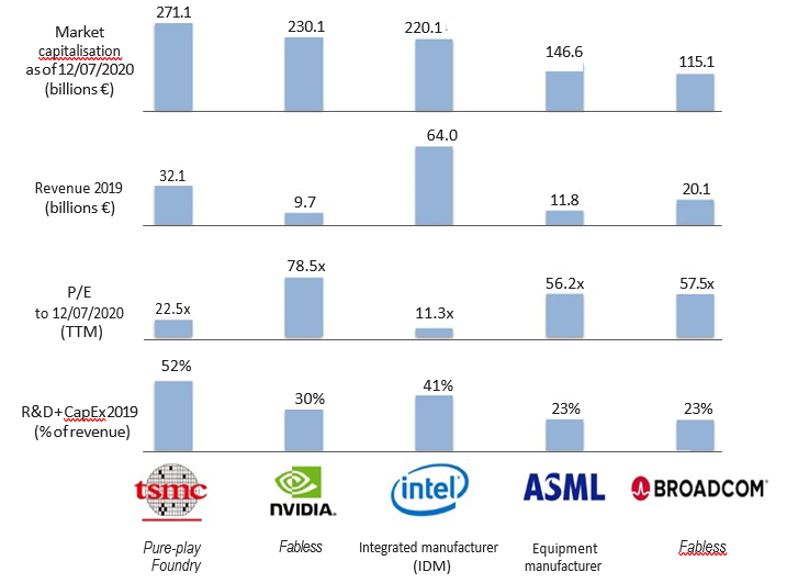 Key figures for the top five market capitalisations in the semiconductor industry in the world