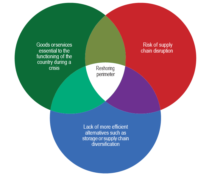 In this study, we show that reshoring, understood as the repatriation of industrial production formerly carried out on our territory, should however remain confined to very special cases, for compelling reasons and in the absence of more efficient alternatives such as storage, supply chain diversification or procurement at the European level.