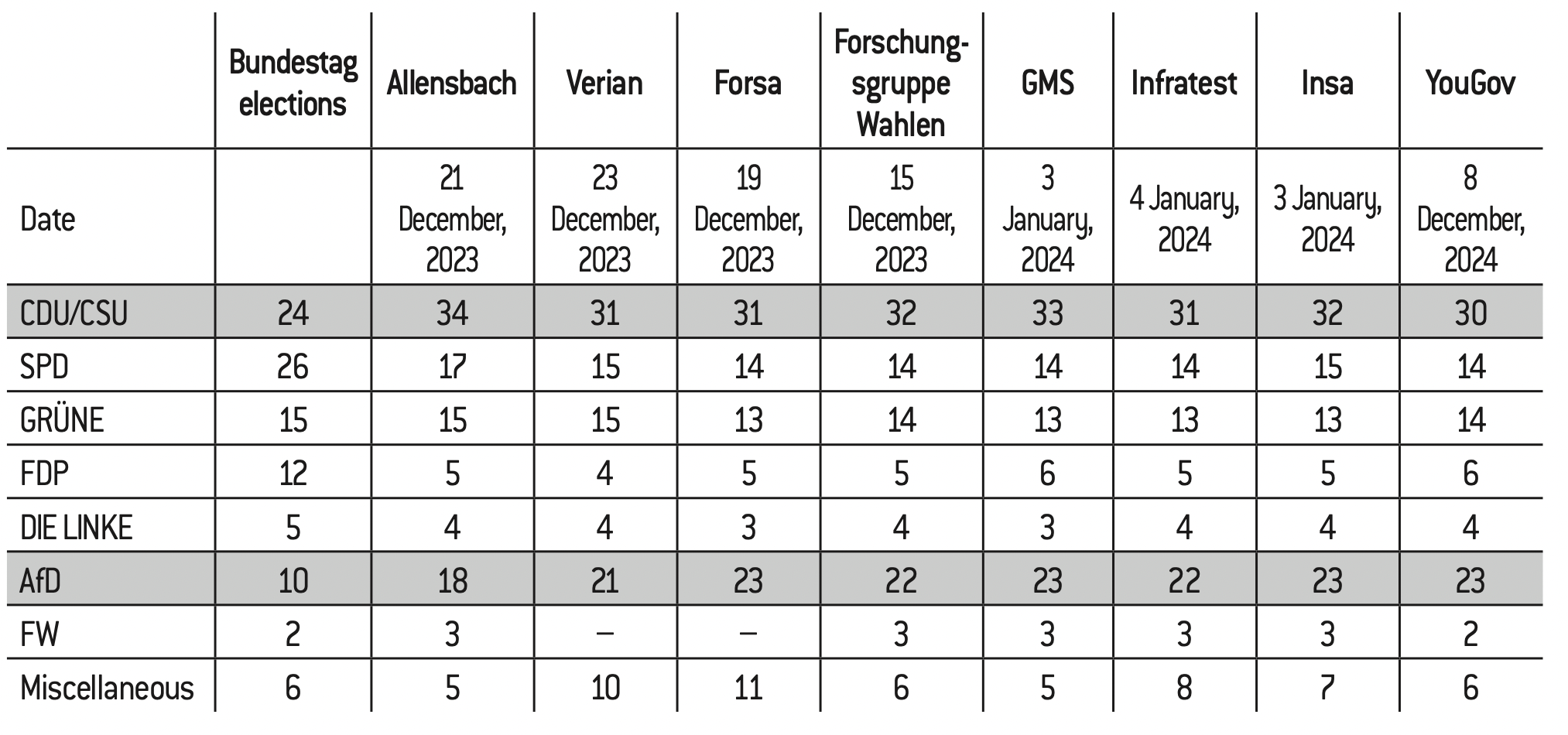 * The “Miscellaneous” category includes several parties, including Freie Wähler, a member of the Bavarian government coalition.