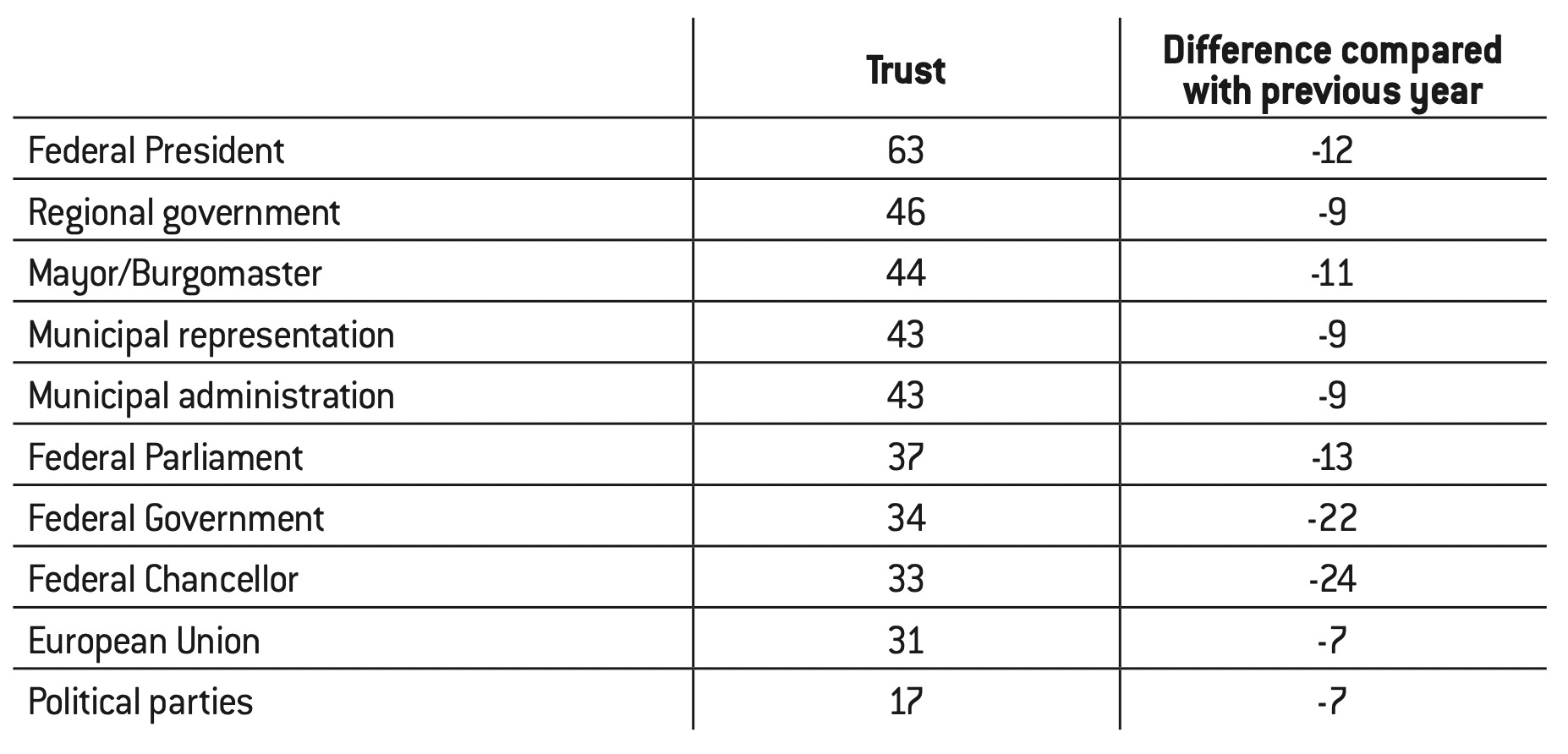 As highlighted by an RTL/NTV poll in 202275, the entire political system is widely distrusted.