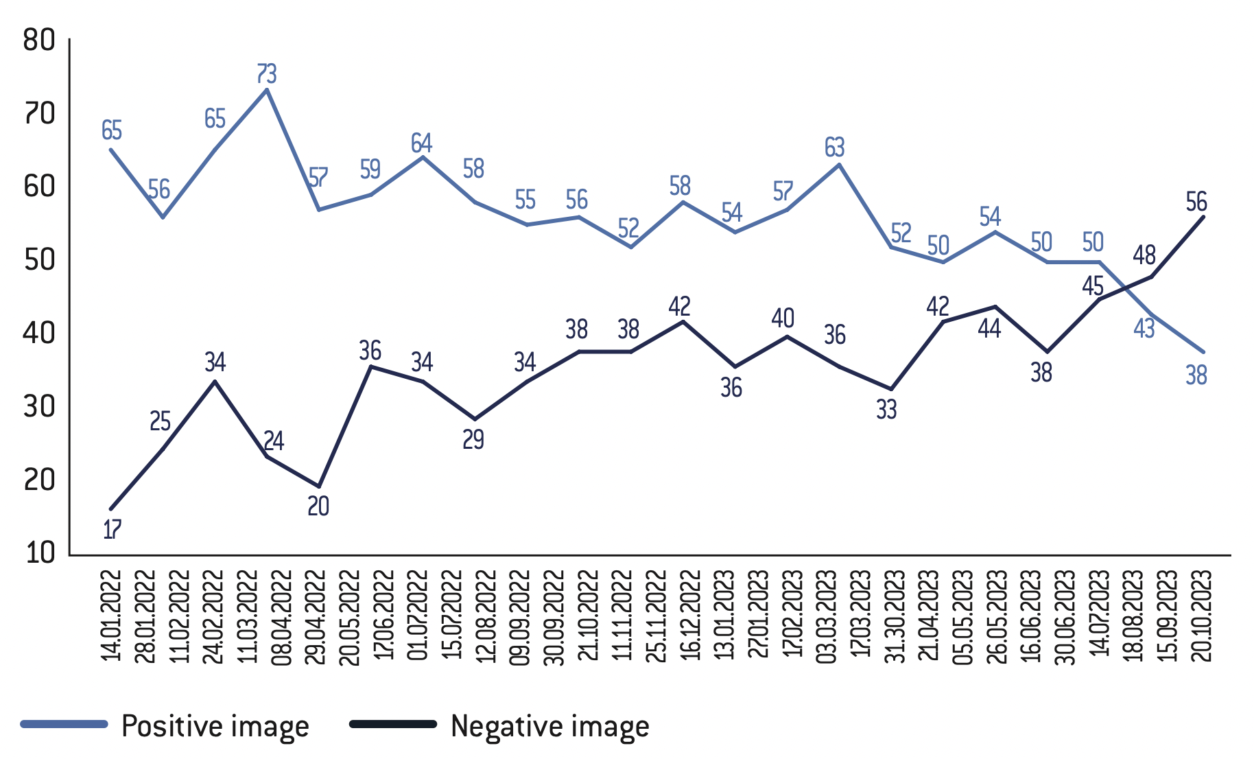 Germans traditionally have little confidence in their politicians. In 2023, 51% of those questioned fear that politicians will be overwhelmed by their responsibilities (+7 points). This figure reflects the poor image of the functioning of the Traffic light coalition and the ongoing migration crisis.