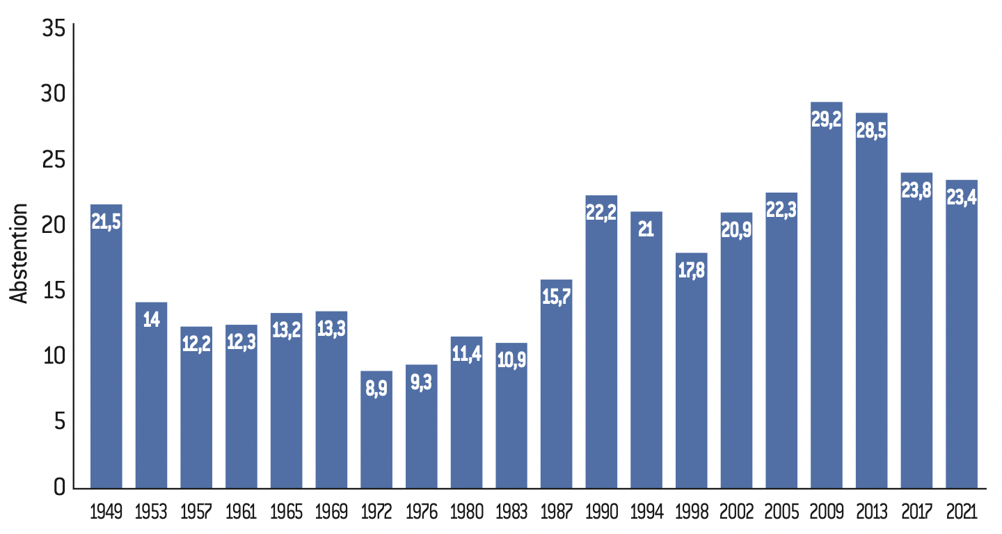 Abstainers in Bundestag elections (1949-1921) (in %)