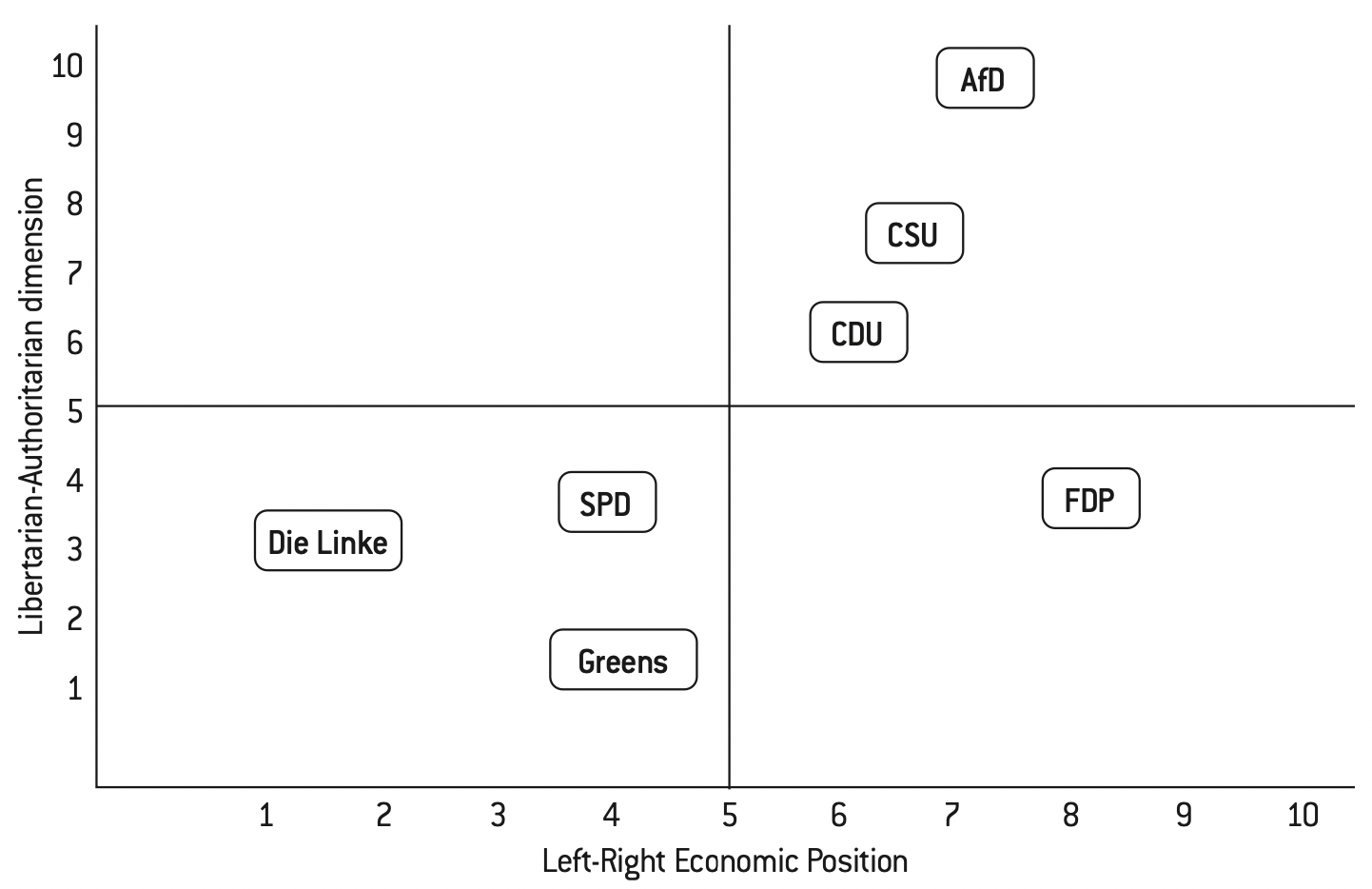 Analysis of many European political systems, including Germany, shows that the left-authoritarian quadrant has a deficit of representative parties107.
