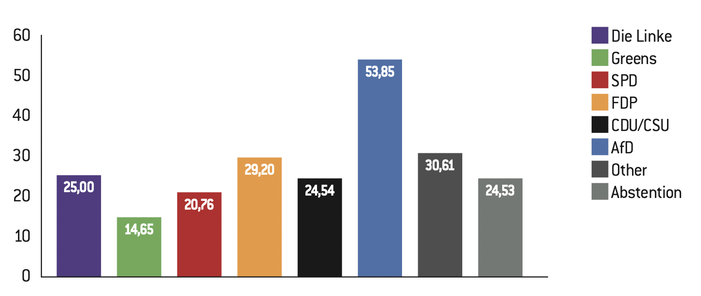 The crisis affecting Die Linke is both organisational and ideological, and is likely to continue beyond its division. Janine Wissler’s party line, which focuses on urban populations, particularly young people, minorities, the promotion of the Woke discourse and support for immigration, is ill-suited to the new Bundesländer, which are characterised by an ageing population, deep-seated hostility to immigration and high levels of unemployment and poverty. The Party is also intellectually paralysed by the rise of the AfD in Die Linke’s historic strongholds.