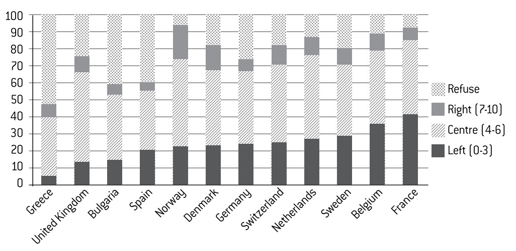 The ESS study offers an insight into a number of political and social values. We will look at four separate dimensions: relationship with politics (including both politicisation and political participation); position on the right-left political spectrum; trust in others and in institutions; and values relating to morals.