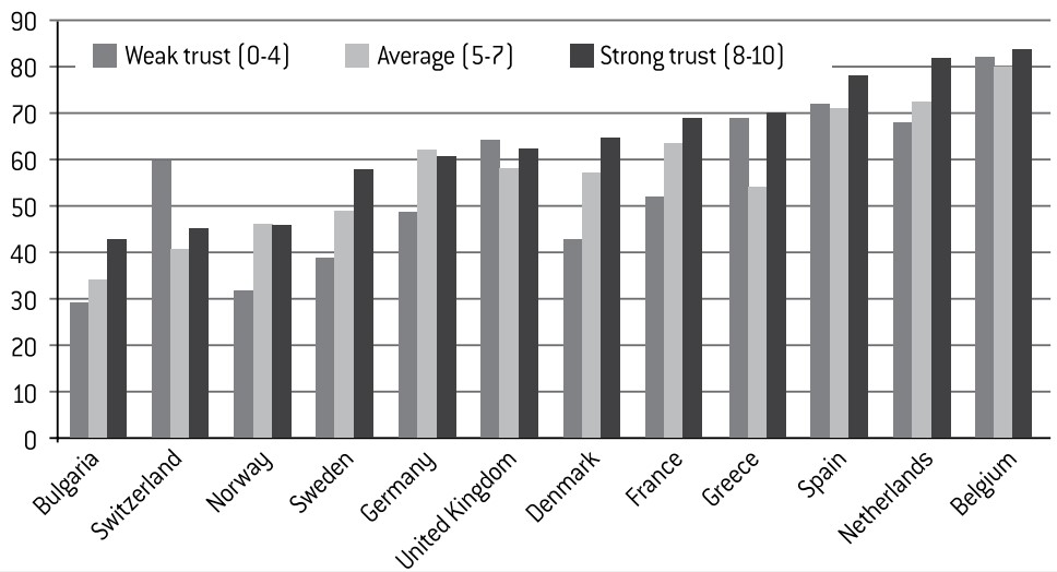 With regard to trust in others, Muslims differ only slightly from the rest of the population. They do generally appear to be a little more wary, but the main divergences on this regard are found in those countries where interpersonal trust is particularly high, such as in Denmark and Norway.