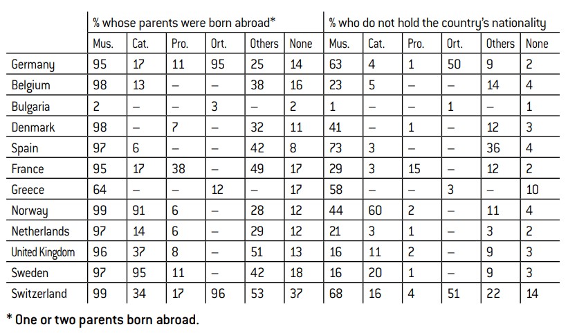 The overwhelming majority of European Muslims are from a Migrant background . Indeed, over 90% of them have a parent who was born abroad (Annex 2). Bulgaria and Greece are the only exceptions to this rule.