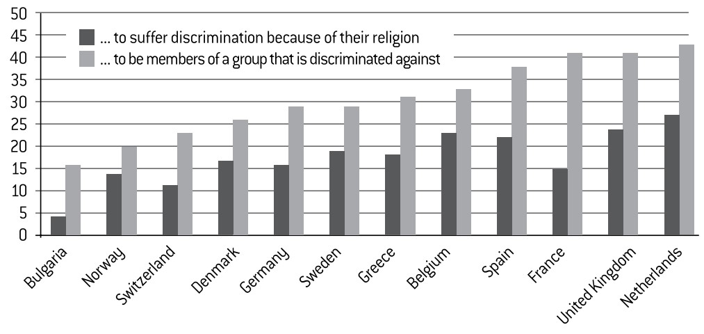 At the same time, a significant proportion of Muslims (Bulgaria aside) experience the feeling of being discriminated against due to their religion. In France, 15% of Muslims declare that this is the case (a figure that rises to 25% among 15-24 year-olds). This is not exclusively a Muslim problem: other religious minorities often experience, albeit to a lesser extent, the feeling of being discriminated against. In France, perceived discriminations affect Muslims and the country’s other religious minorities to the same degree.