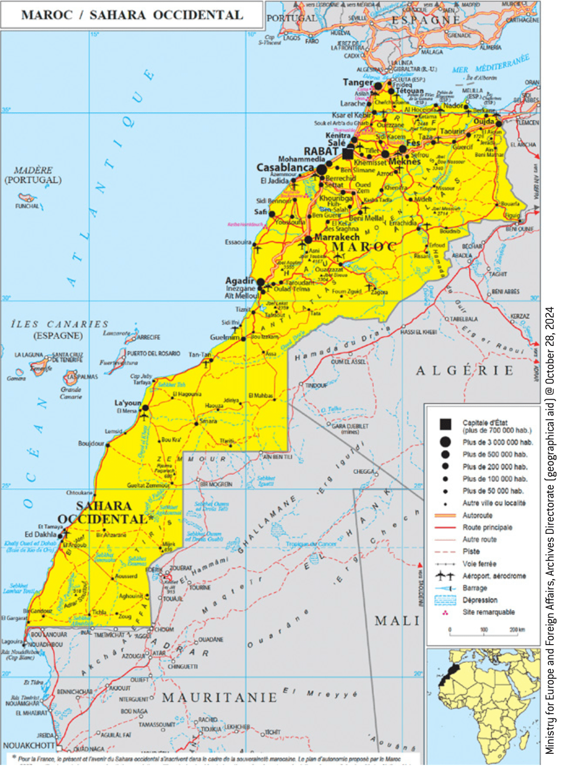 Map of Morocco featured on the official website of the French Ministry for Europe and Foreign Affairs since October 2024