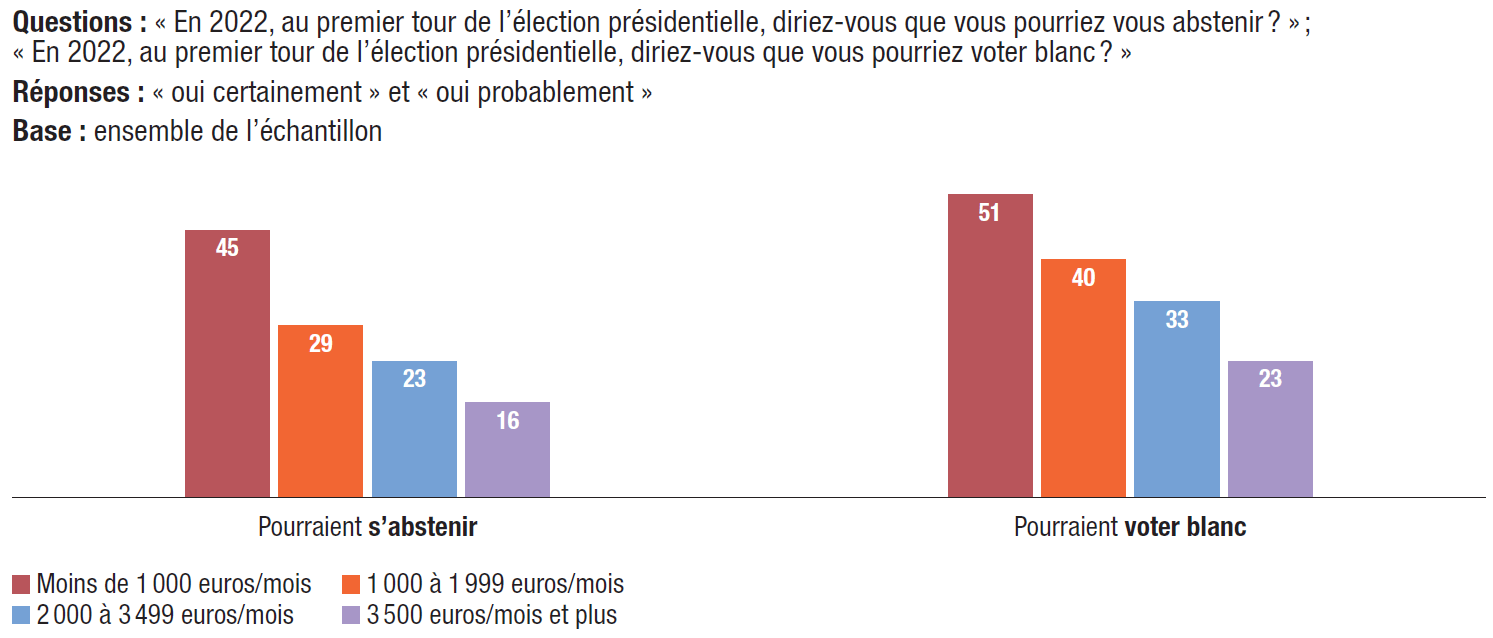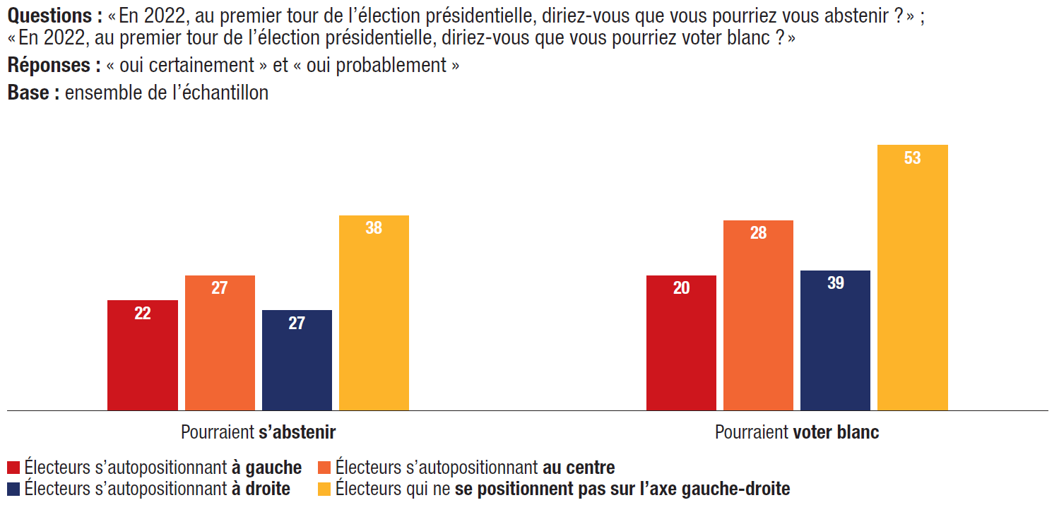 15. Abstention et vote blanc : 35% des personnes interrogées pourraient voter blanc au premier tour de la présidentielle, 26% disent pouvoir s’abstenir.