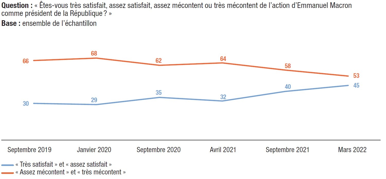 En mars 2022, 45% des électeurs sont satisfaits de l’action d’Emmanuel Macron comme président