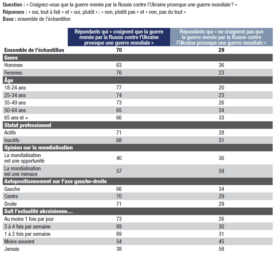 6. 70% craignent de voir le conflit dégénérer en une guerre mondiale.