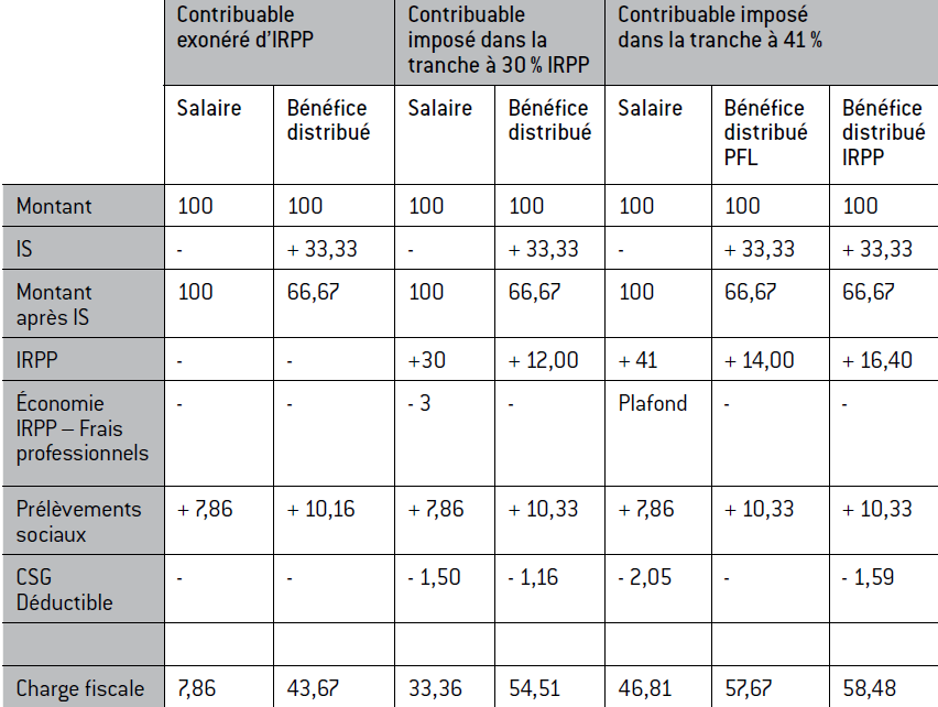 Tableau 2 : Salaire et bénéfice distribué – charge fiscale totale