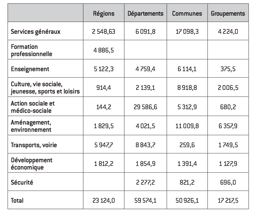 Tableau 1 : dépenses des collectivités locales par fonction en 2007 en millions d’euros