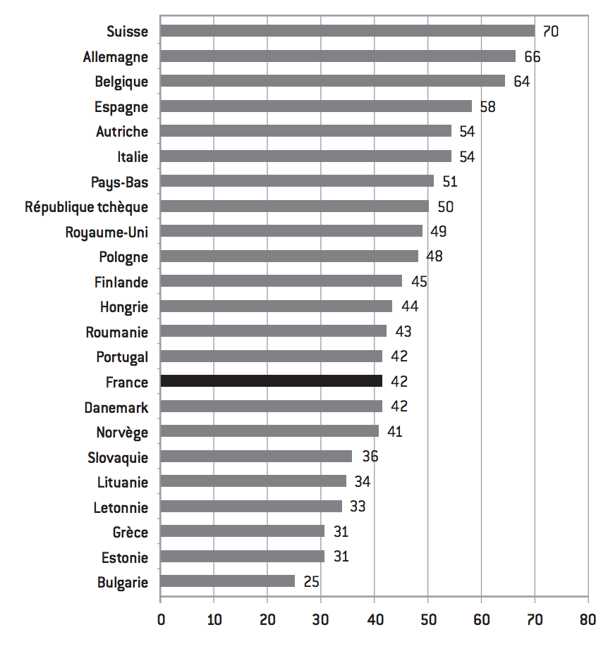 Il apparaît que la France conserve une organisation relativement centralisée, beaucoup plus que le Royaume-Uni, les Pays-Bas ou l’Italie. La palme de la décentralisation revient à la Suisse, à l’Allemagne et à la Belgique. Les pays plus centralisés que la France sont généralement nettement plus petits (les pays scandinaves ou baltes, notamment). En outre, le budget des régions françaises est faible. En 2007, leurs dépenses s’élevaient à 24,4 milliards d’euros, contre 61,7 milliards d’euros pour les départements et 40,9 milliards d’euros pour le secteur communal (cf. rapport du comité Balladur, Il est temps de décider, mars 2009). Ainsi, la Navarre, le Pays basque ou l’Aragon possèdent des budgets d’un montant six à douze fois supérieur à ceux de l’Aquitaine ou de Midi-Pyrénées (cf. Alain Rousset et Jean Viard, Ce que régions veulent dire, éditions de l’Aube, 2009). Un Land comme celui de Hambourg, qui compte 1,8 million d’habitants, consacre deux fois plus de moyens financiers en un an à l’innovation que les régions Midi-Pyrénées et Aquitaine réunies en deux ans. Nous montrons pourtant dans cette note que la politique économique de la France aurait tout intérêt à être de plus en plus décentralisée, et ceci pour trois raisons principales :