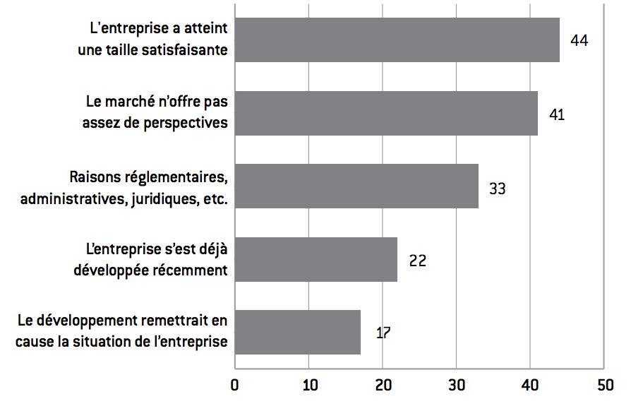 Graphique 5 : raisons citées comme freins au développement passé de l’entreprise (par des entreprises interrogées), en %