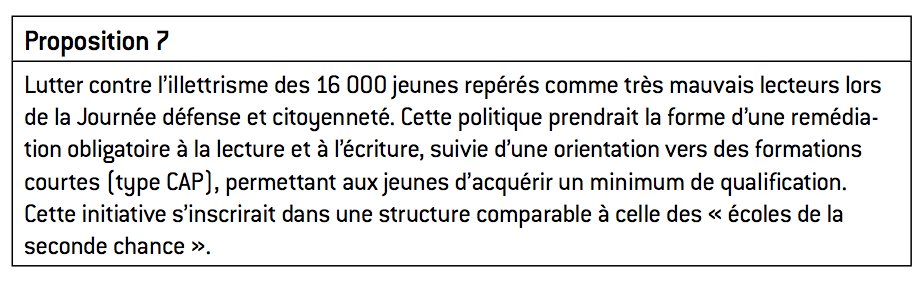 – de donner une qualification minimale à ceux qui n’ont rien, en luttant en particulier contre l’illettrisme des jeunes ;