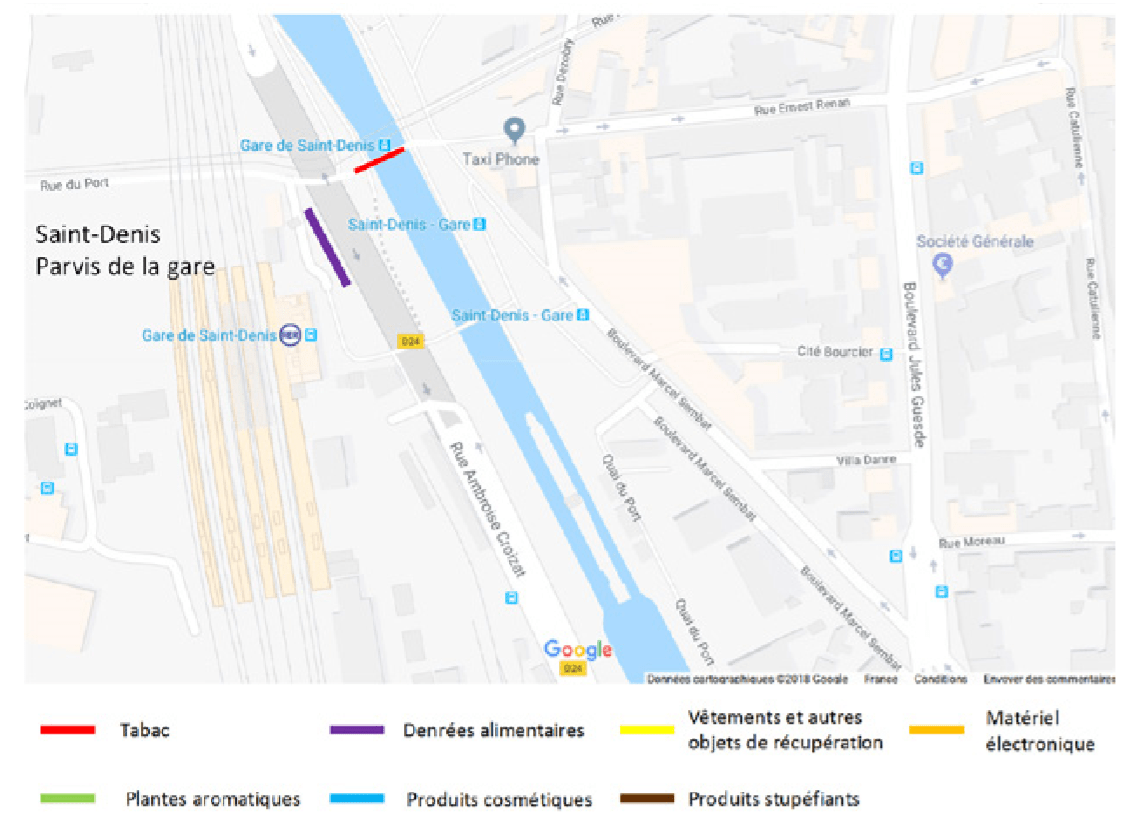 De nombreuses problématiques ont ainsi fait en quelque sorte des allers-retours entre le nord de Paris et la Seine-Saint-Denis, au gré des actions policières. La question du crack en est un exemple, trafiquants et consommateurs ayant souvent oscillé entre les XVIIIe et XIXe arrondissements et les abords de la gare de SaintDenis. Sur ce sujet, voir « Un supermarché du crack aux portes de Paris », leparisien.fr, 15 septembre 2009 , et Cécile Beaulieu, « Crack dans le métro parisien : “Lorsque je les vois, je vois la mort” », leparisien.fr, 18 janvier 2018 .