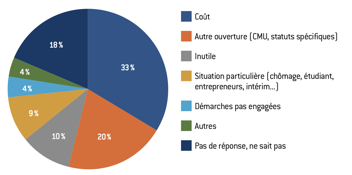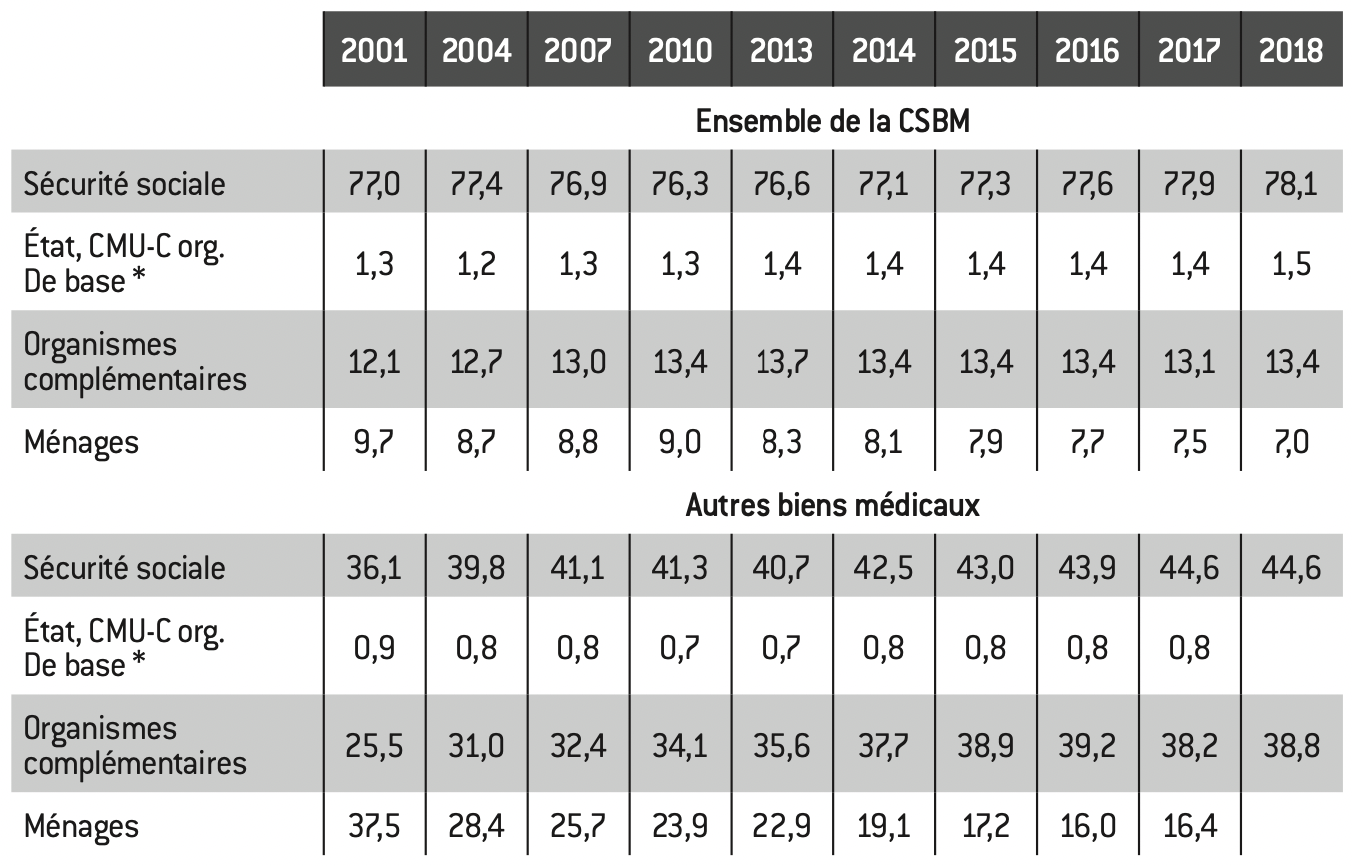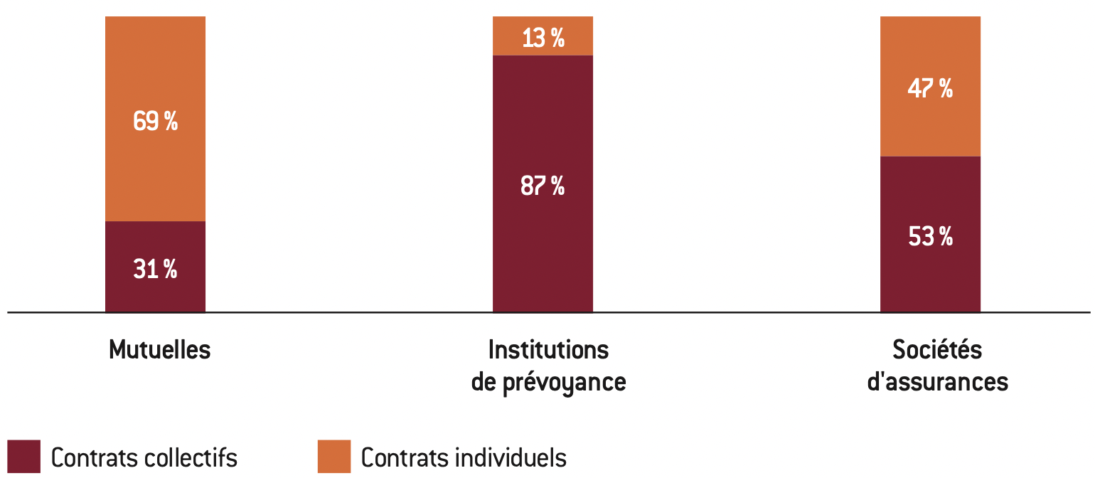 Muriel Barlet Mathilde Gaini, Lucie Gonzalez et Renaud Legal (dir.), « La complémentaire santé : acteurs, bénéficiaires, garanties », Drees, édition 2019, p. 54.