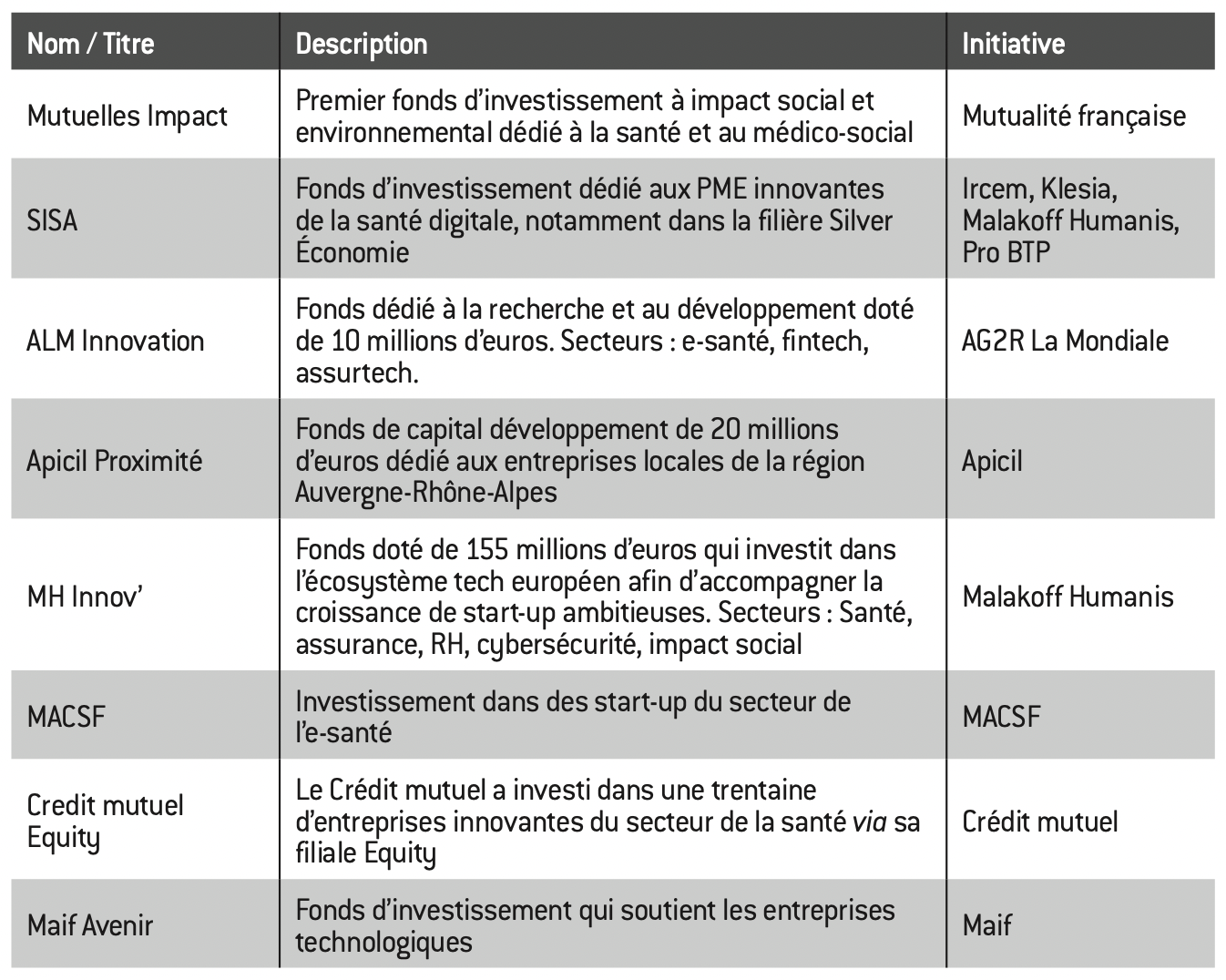 Tableau 6 : Liste (non exhaustive) de fonds d’investissement créés à l’initiative ou en partenariat avec des organismes complémentaires