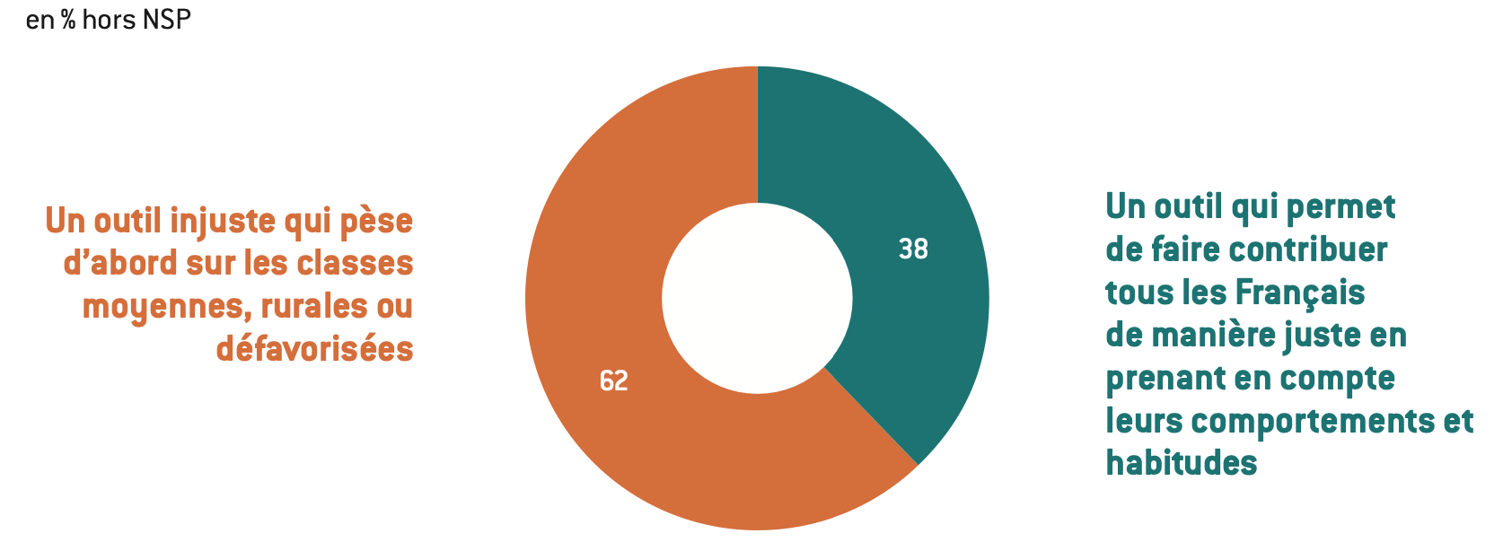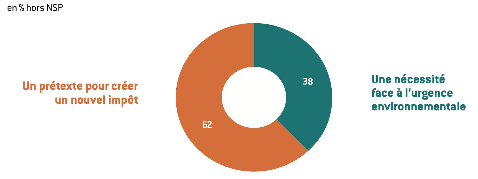 L’écologisme est assimilé à un fiscalisme. Inventer une « fiscalité verte » ne dissimule pas le fait qu’il s’agit d’un impôt supplémentaire. L’excès de fiscalité, aujourd’hui si profondément ressenti dans le pays, sonne le glas d’une « fiscalité verte ». L’écologisme en est pénalisé dès lors que ses promoteurs veulent, eux aussi, recourir à la hausse des prélèvements obligatoires. La fiscalité écologique est rejetée. Elle est non seulement comprise comme un impôt supplémentaire, mais aussi comme un impôt injuste : pour 62 % des répondants « la fiscalité verte » est « un outil injuste qui pèse d’abord sur les classes moyennes, rurales ou défavorisées » (contre 38% qui y voient « un outil qui permet de faire contribuer tous les Français de manière juste en prenant en compte leurs comportements et habitudes »).