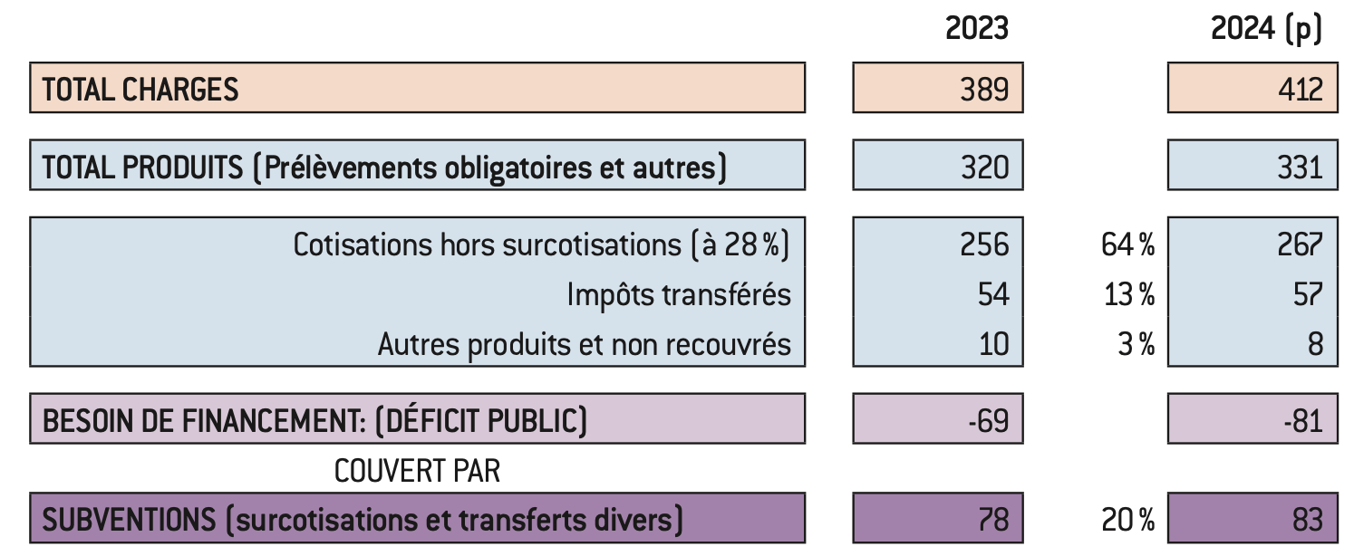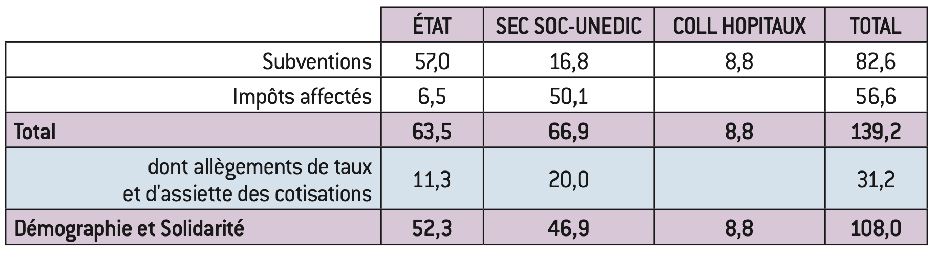 En plus des cotisations, les régimes reçoivent donc 139 Mds d’euros de ressources publiques dont 31 Mds d’euros pour alléger les cotisations des assurés