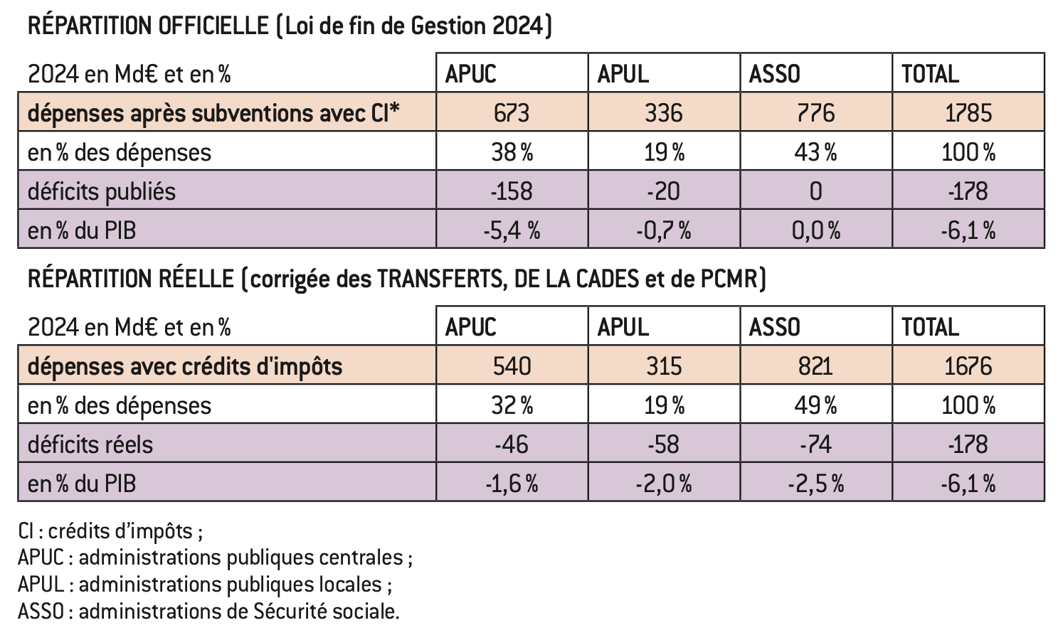 En y intégrant la part des établissements publics à caractère administratif (EPA) presque exclusivement financés par l’État de manière surprenante, les contributions des opérateurs de l’État (versées à taux de 85%), des collectivités locales et des établissements publics de santé (versées à un taux de 43%) sont décrites comme de simples cotisations dans les rapports publics, et non, comme pour l’État comme une « contribution d’équilibre ».