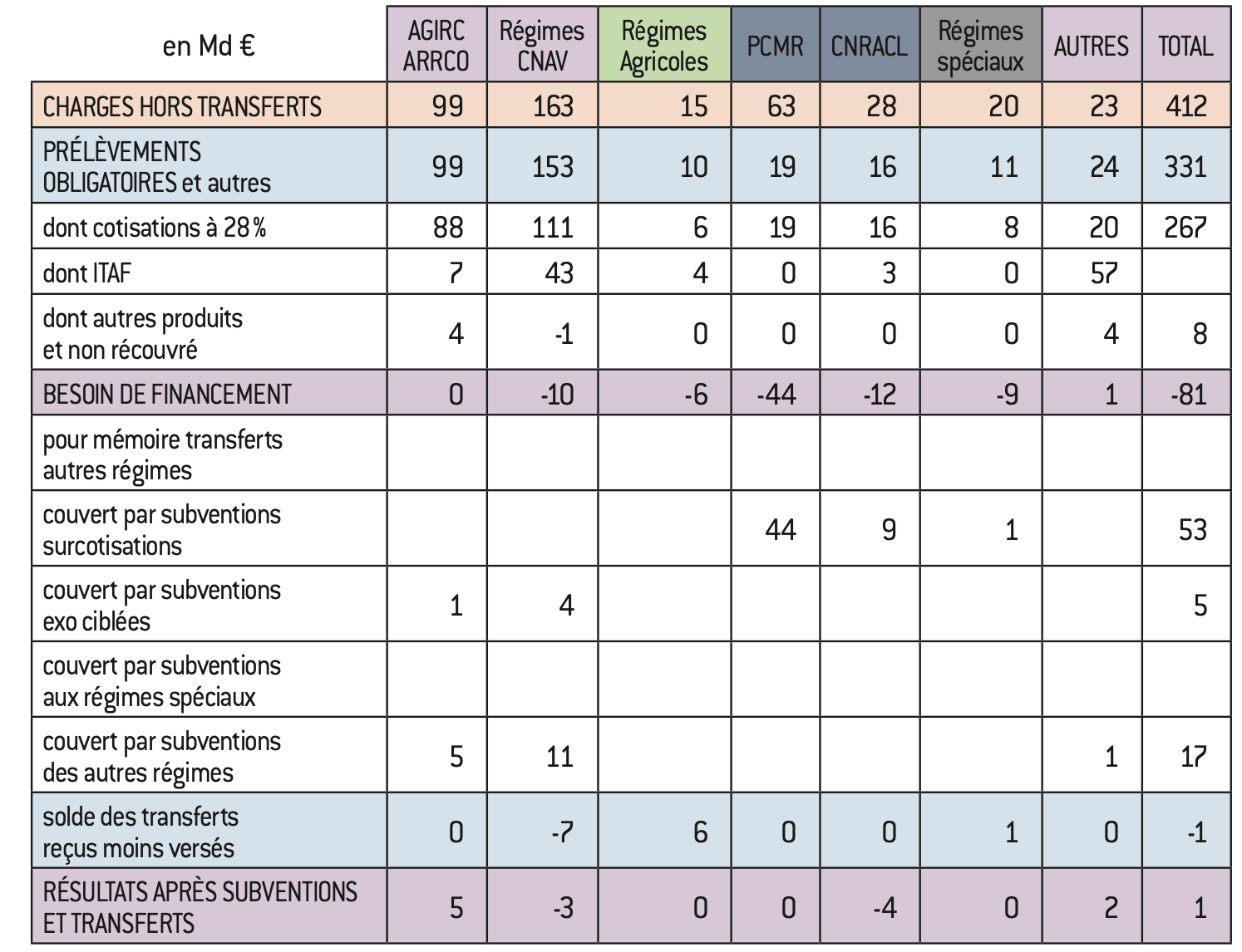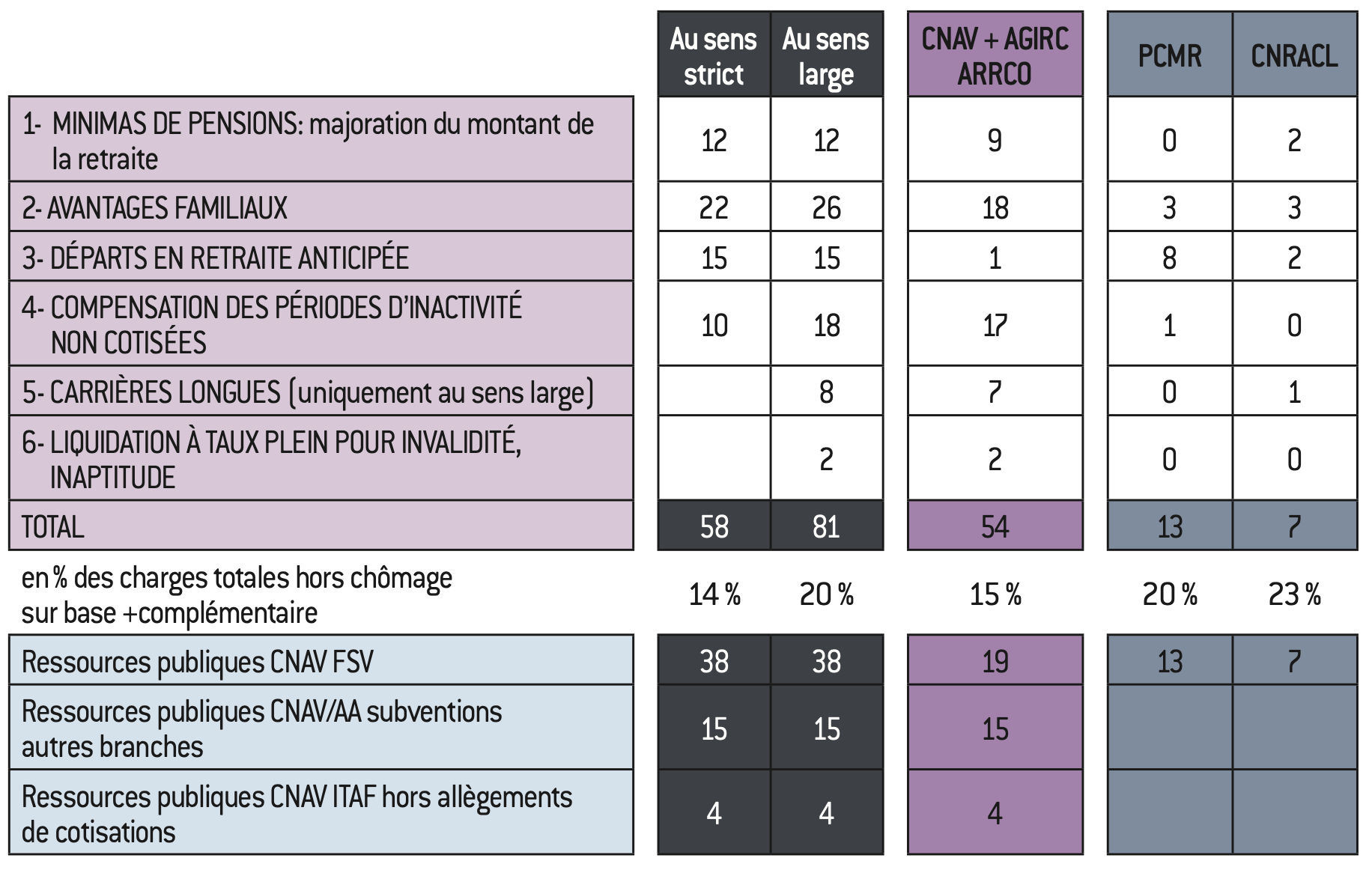 Tableau 1 : Financement d’ensemble des retraites