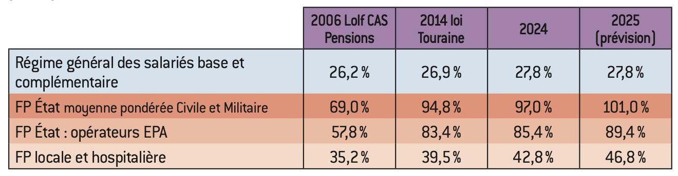Tableau 11 : Évolution des cotisations (employeur et salarié) des régimes de la fonction publique