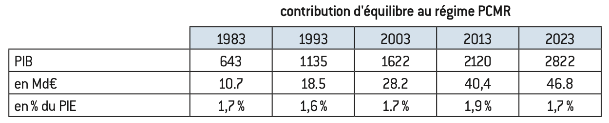 Le défaut de réponse satisfaisante tient d’abord au fait que ce besoin de financement n’a, jusqu’à présent, pas été mesuré par rapport à une référence objective. Il est en effet neutralisé dans les comptes de la branche vieillesse de la Sécurité sociale et dans le compte rendu du COR. Le rapprochement plusieurs fois tenté par le COR entre les taux calculés pour PCMR et ceux des autres régimes s’est avéré inexact et a été supprimé du rapport annuel en juin 202443.