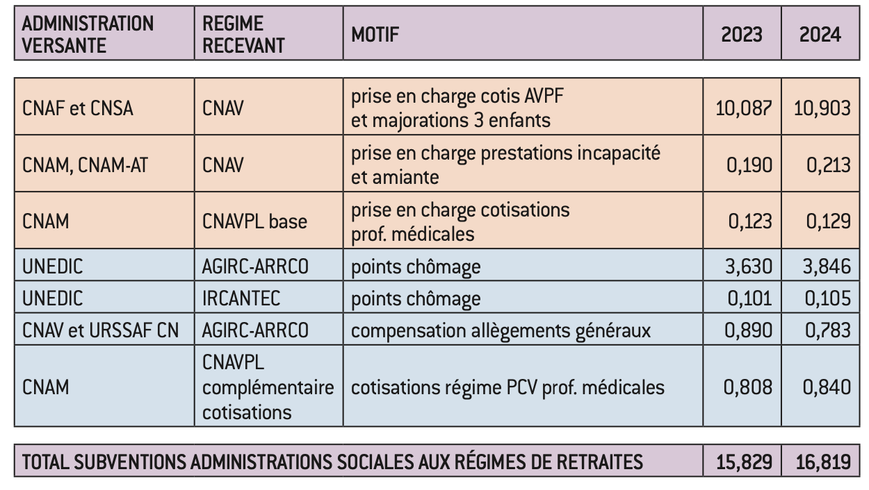 Le reste de la protection sociale subventionne les régimes de retraites à hauteur de 17 Mds d’euros en 2024