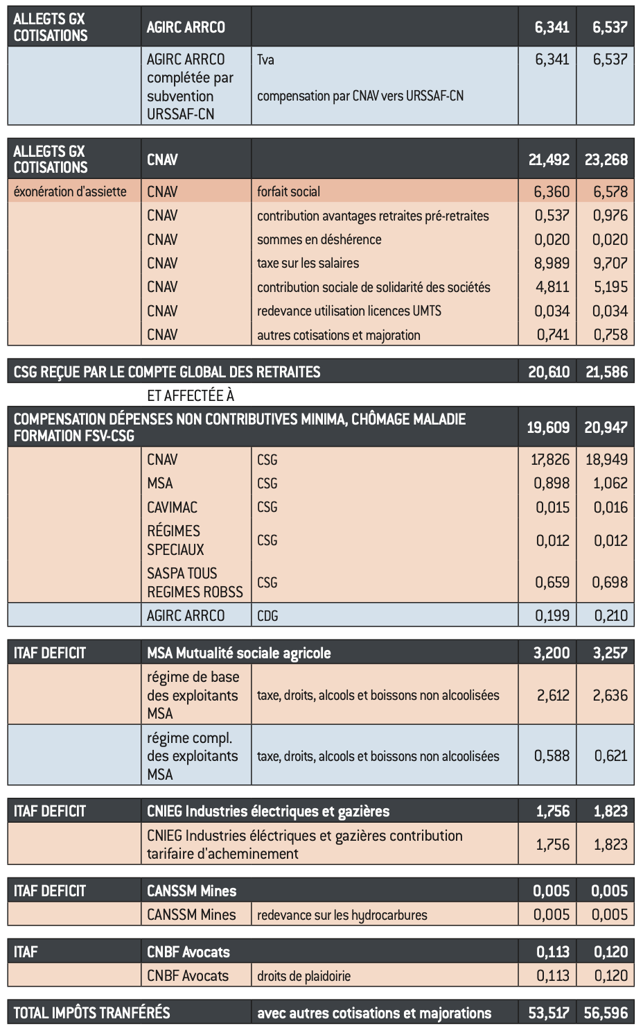 Le transfert d’impôts a trois objectifs, dont la couverture de déficits spécifiques à certains régimes