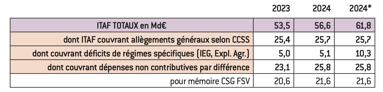 * 2024 simulée avec le schéma de financement de 4 régimes spéciaux adossés CNAV, financée par 5,2 Md€ de TVA