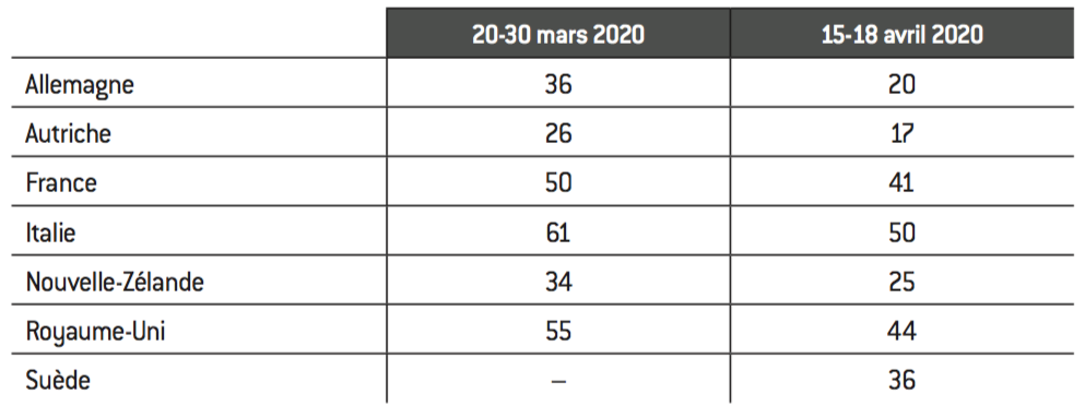 Dans tous les cas, le confinement n’aura pas été une expérience anodine. Pour autant, les populations semblent avoir accueilli les mesures et les restrictions imposées par le confinement avec confiance ; elles s’y sont résolues. En France par exemple, plus de huit individus sur dix (88%) étaient d’accord avec l’affirmation selon laquelle le confinement est le seul moyen efficace de lutter contre l’épidémie de coronavirus10.
