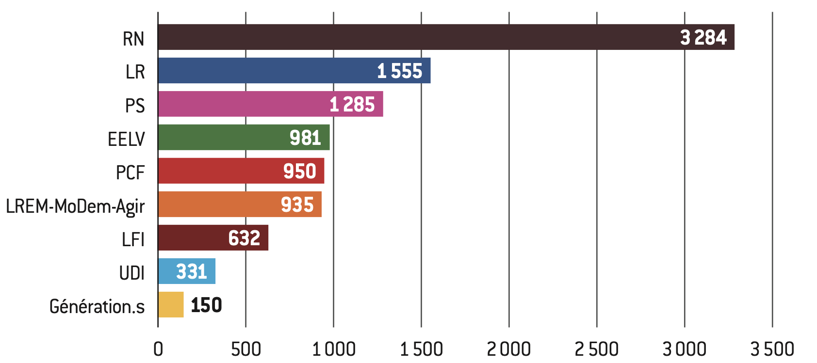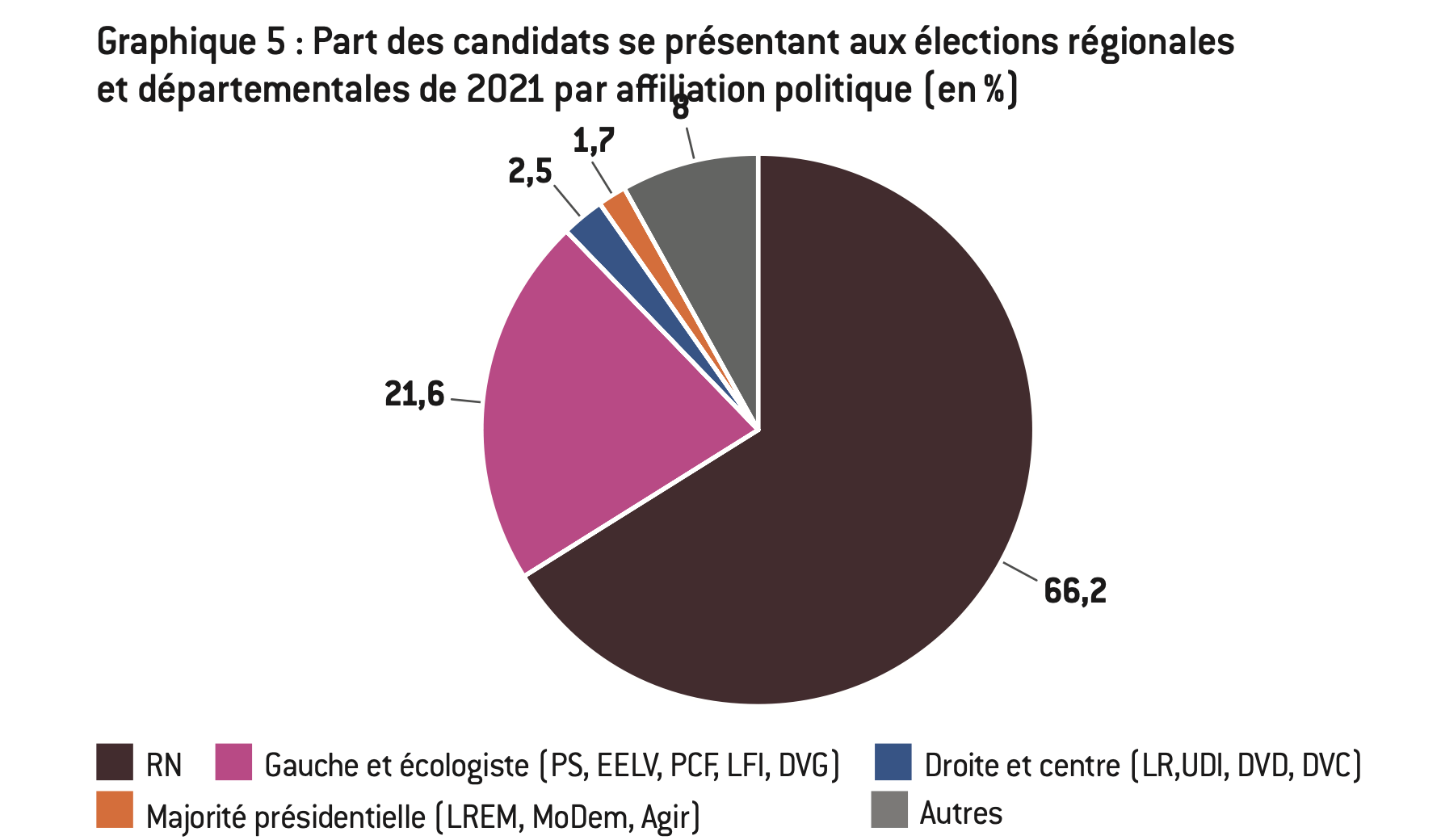 Parmi les 1.846 candidats du RN, 1.222 ont été à la fois candidats aux élections départementales et régionales.