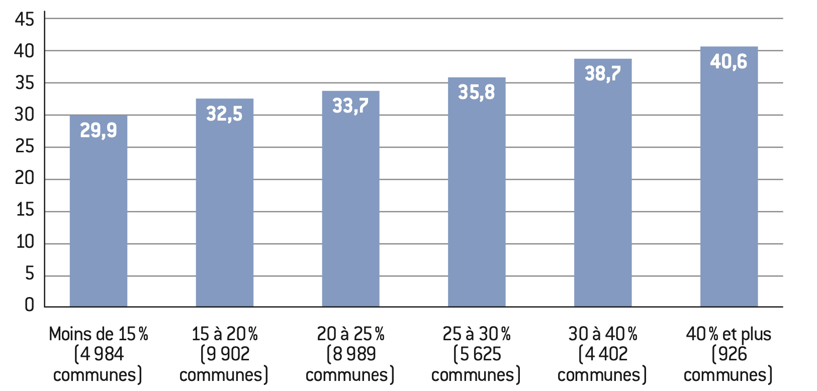 Graphique 4 : Taux de couverture du FN/RN aux élections départementales de 2015 et 2021 (en %)