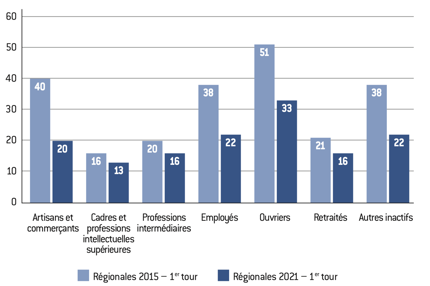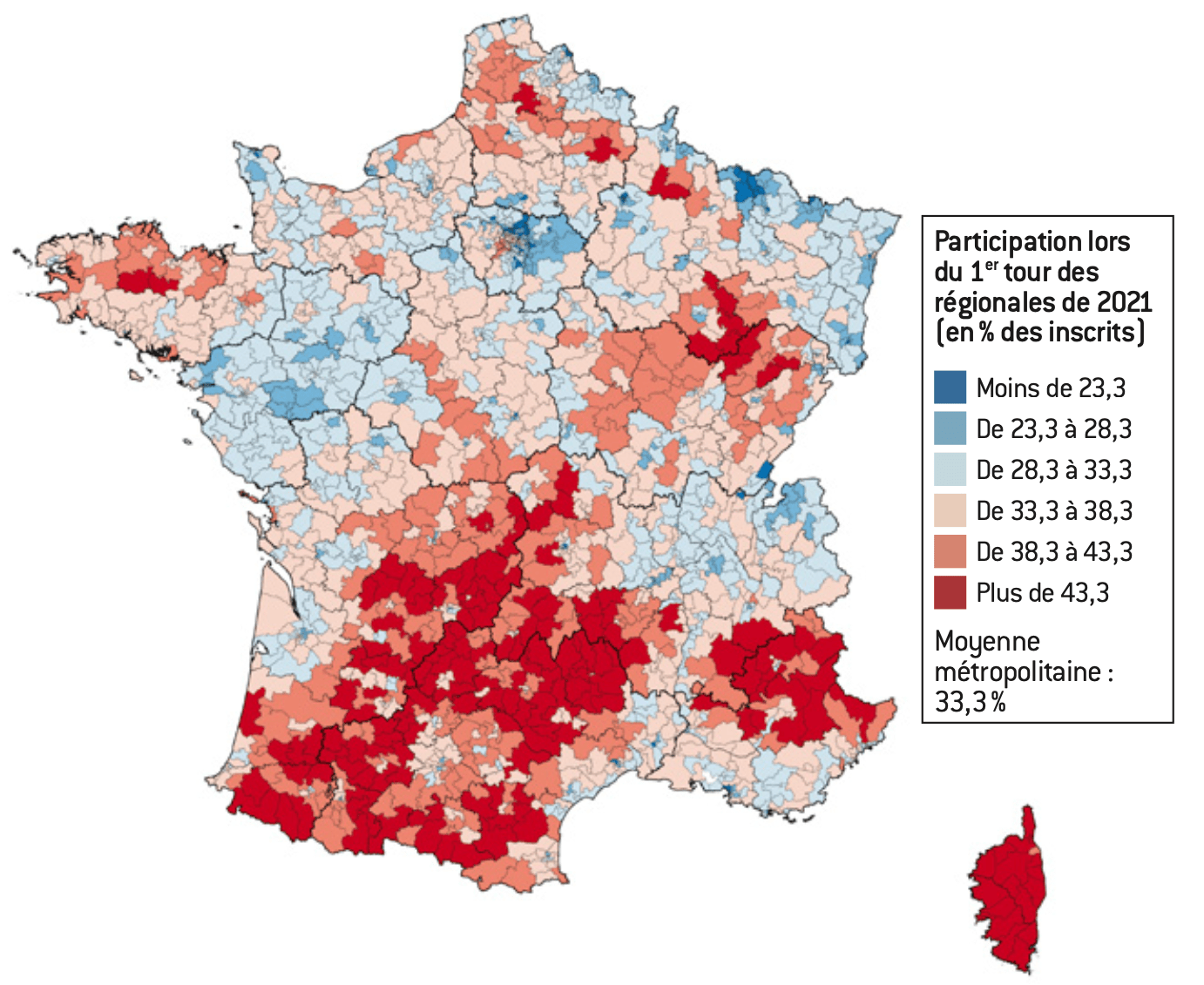 Les dimanches 20 et 27 juin 2021 se sont tenues en France les élections régionales et départementales. L’abstention record et la prime aux sortants constituent les faits marquants de cette double élection, qui a vu la plupart des exécutifs régionaux et départementaux reconduits par les électeurs. En métropole, la droite et la gauche ont consolidé leurs positions dans les régions qu’elles dirigeaient et seuls huit conseils départementaux ont basculé (cinq vers la droite, trois vers la gauche). À l’inverse, la tendance a été au changement en outre-mer (où trois régions sur quatre ont changé de main).