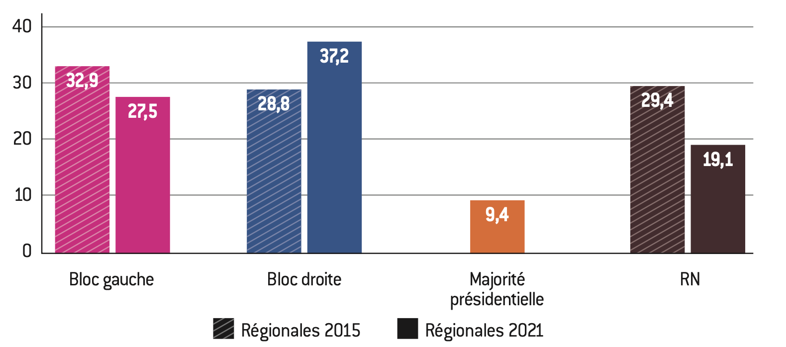 Globalement, la dynamique aperçue lors du premier tour a été confirmée, puisque tous les sortants ont été réélus. Le recul du RN s’est également confirmé : le parti de Marine Le Pen a récolté 20% des suffrages au second tour des régionales de 2021 contre 27,9% en 201568.
