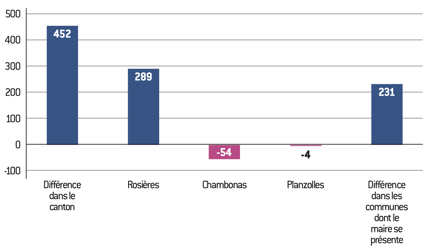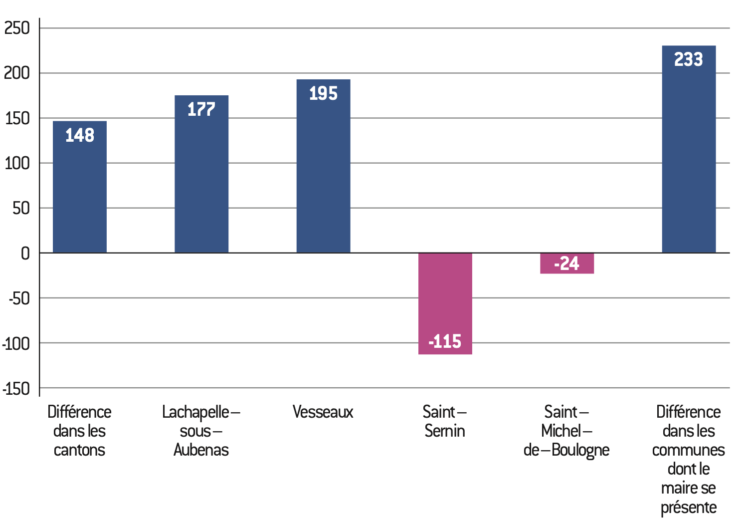 Dans le canton d’Annonay-2, la droite s’est appuyée sur deux maires (un titulaire et un remplaçant) pour ravir les deux sièges de conseillers départementaux à la sortante PS et à son nouveau binôme. Les suffrages recueillis par la droite dans ces deux communes offrent une marge de 309 voix au binôme de droite sur un total de 311 voix d’avance sur l’ensemble du canton.