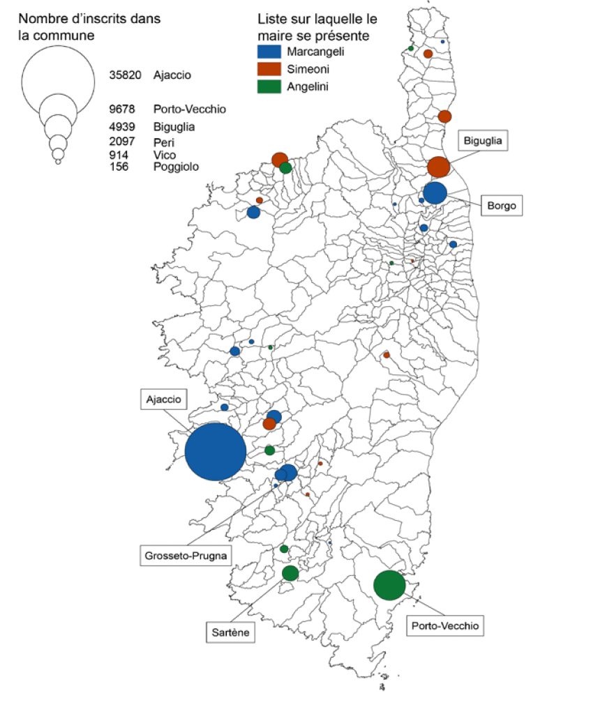 De nombreux conseillers départementaux étaient également présents sur la liste de Laurent Marcangeli mais leur influence est relativement faible. La disparition des conseils départementaux de Haute-Corse et de Corse-du-Sud explique certainement le faible impact de ces élus confirmés.